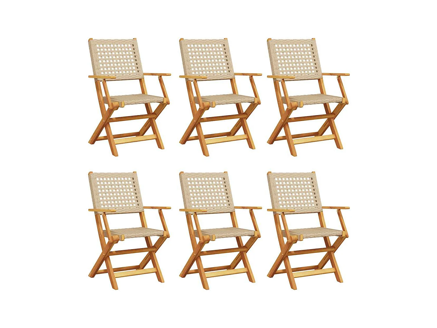 Juego de 6 Sillas de jardín plegables madera maciza acacia beige ES266956