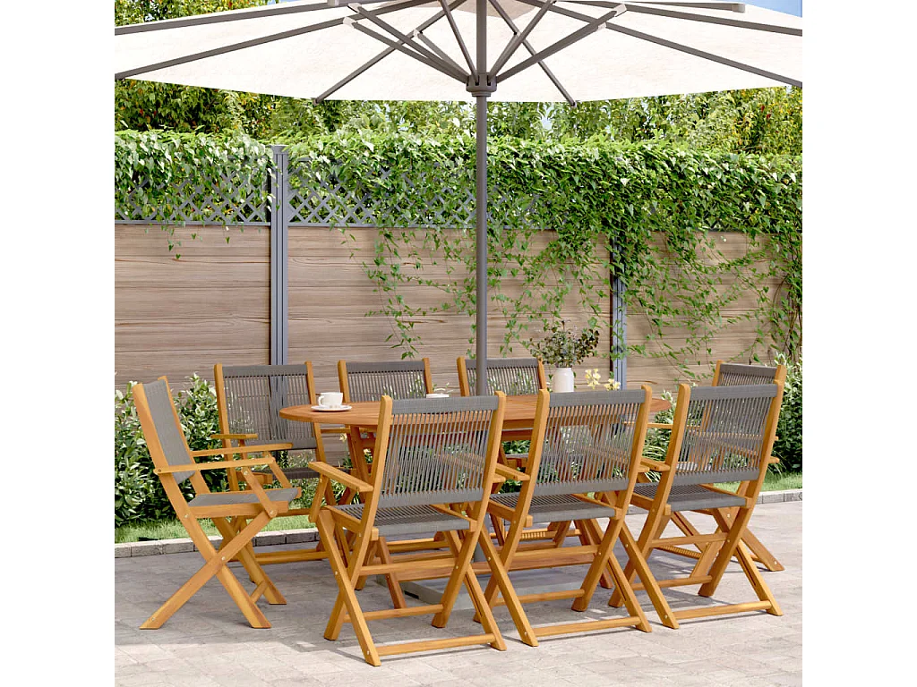 Sillas de jardín plegables 8 unidades madera maciza y ratán PE gris