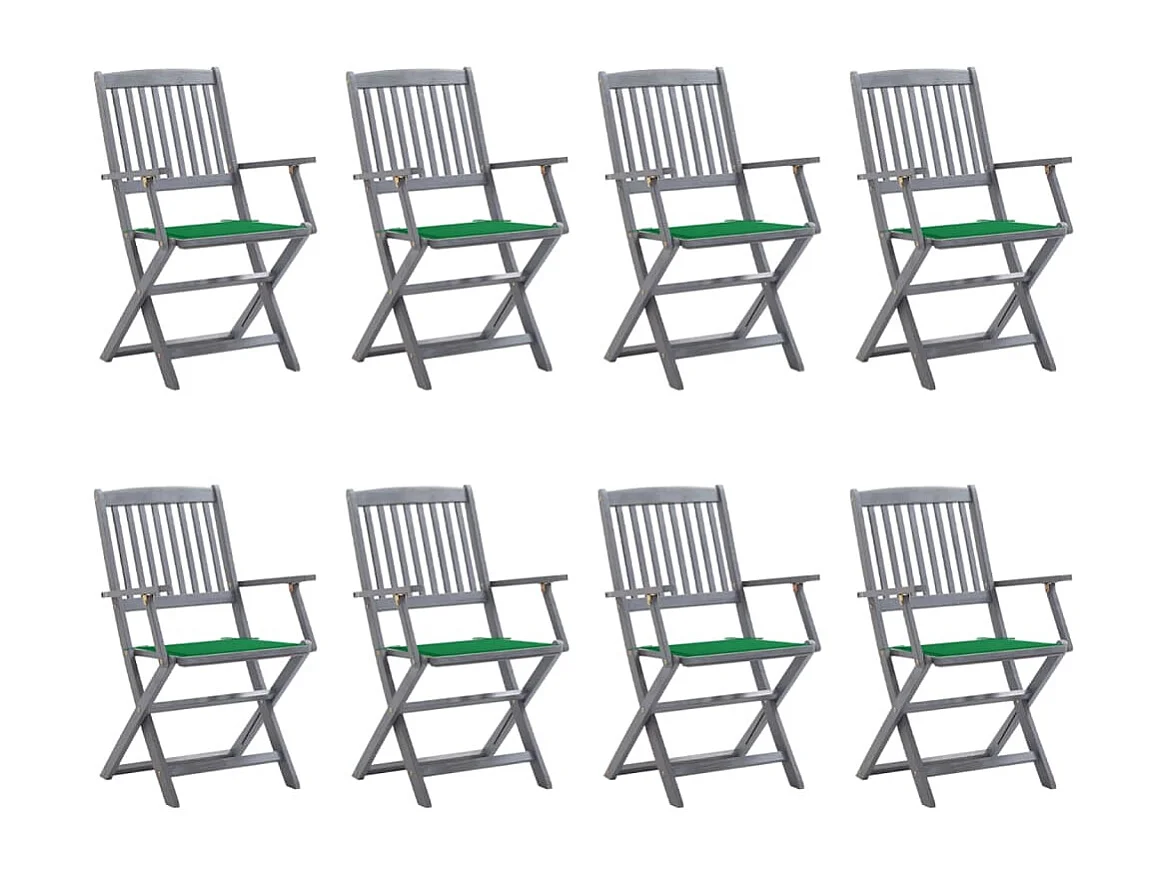 Sillas de jardín plegables 8 unidades y cojines madera maciza acacia