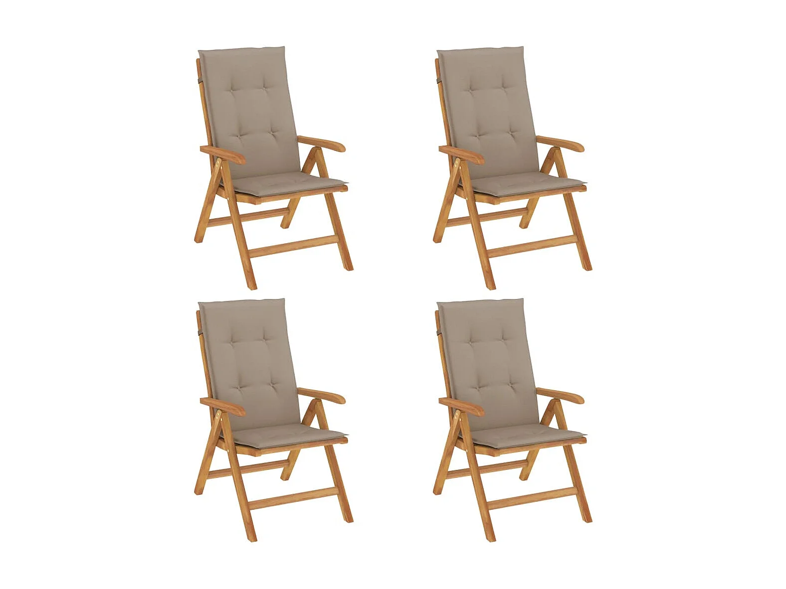 Sillas de jardín reclinables y cojines 4 unidades madera maciza teca
