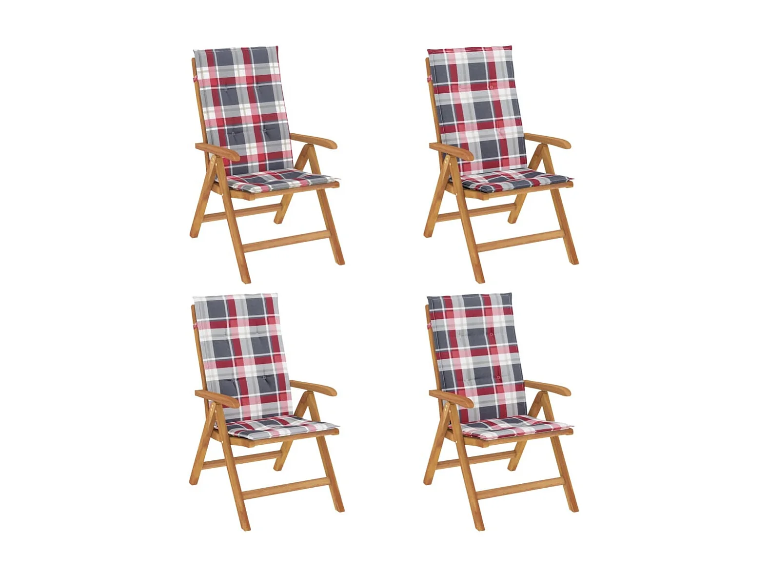 Sillas de jardín reclinables y cojines 4 unidades madera maciza teca