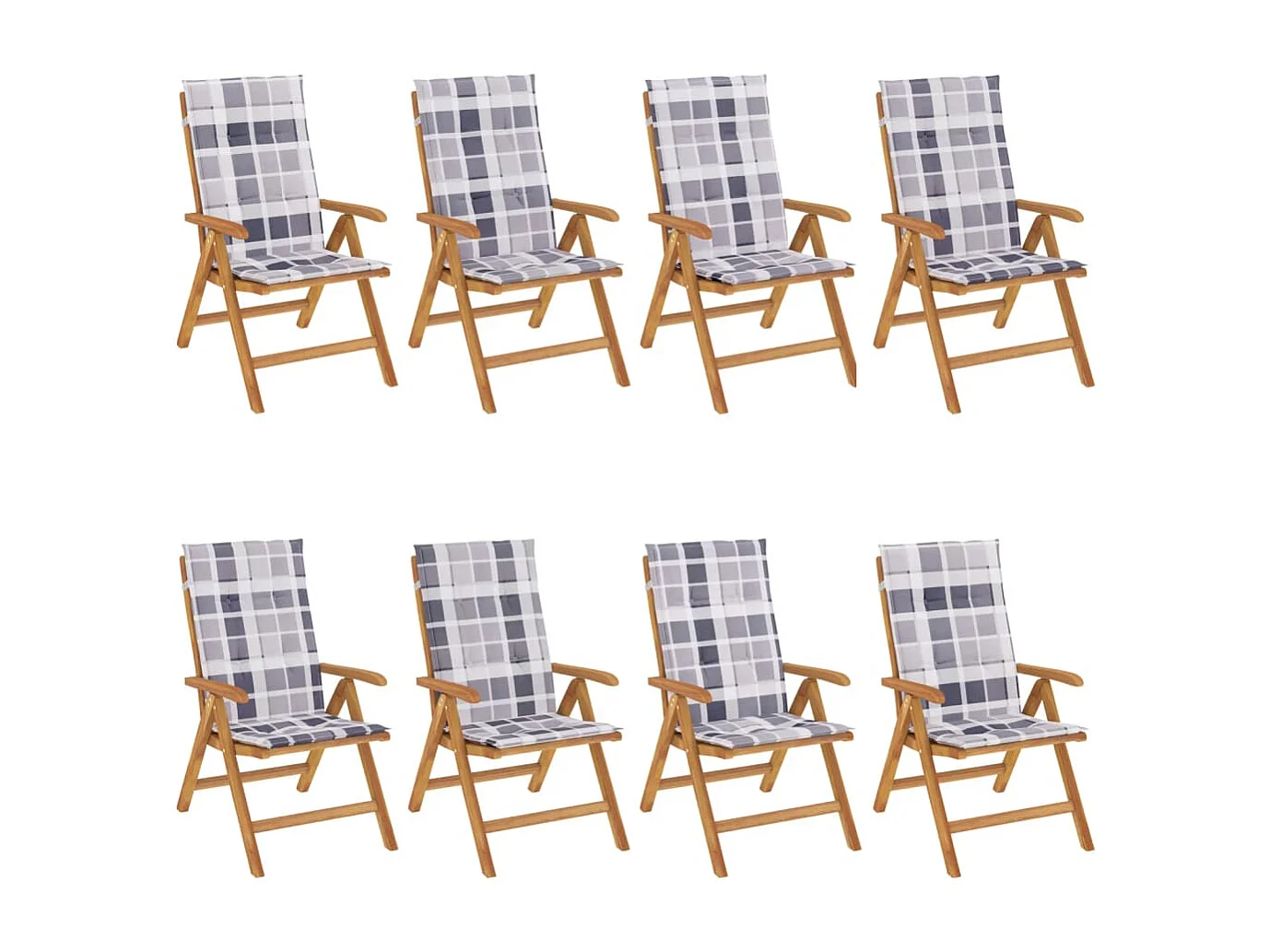 Sillas de jardín reclinables y cojines 8 unidades madera maciza teca