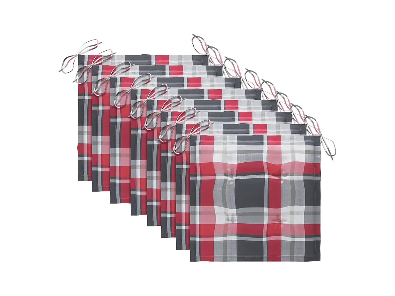 Sillas de jardín 8 unidades madera teca con cojines a cuadros grises