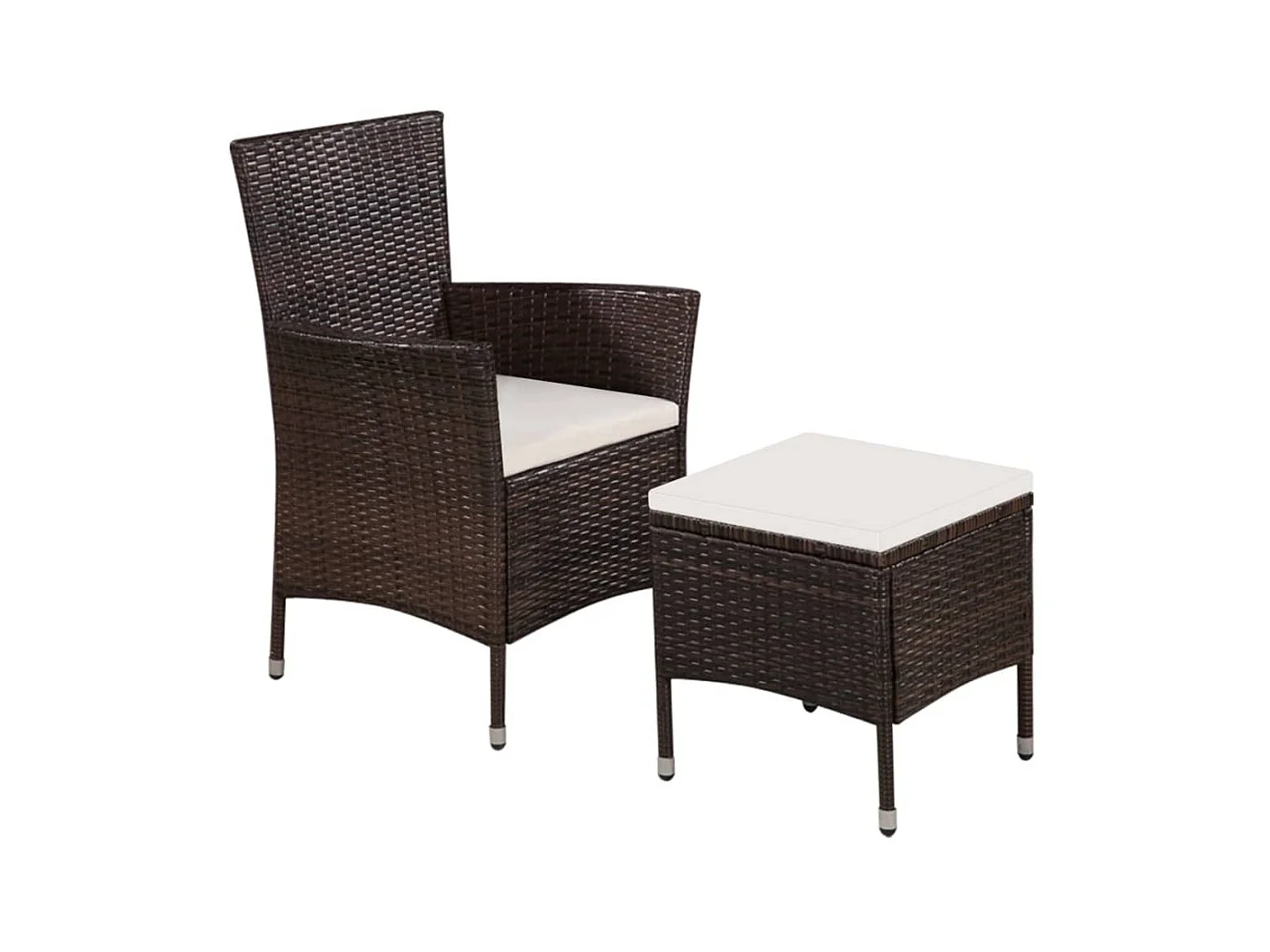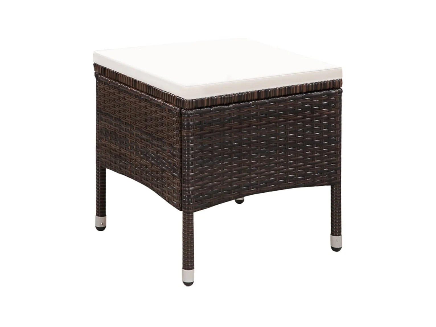 Sillas de jardín y taburete con cojines ratán sintético marrón ES55245