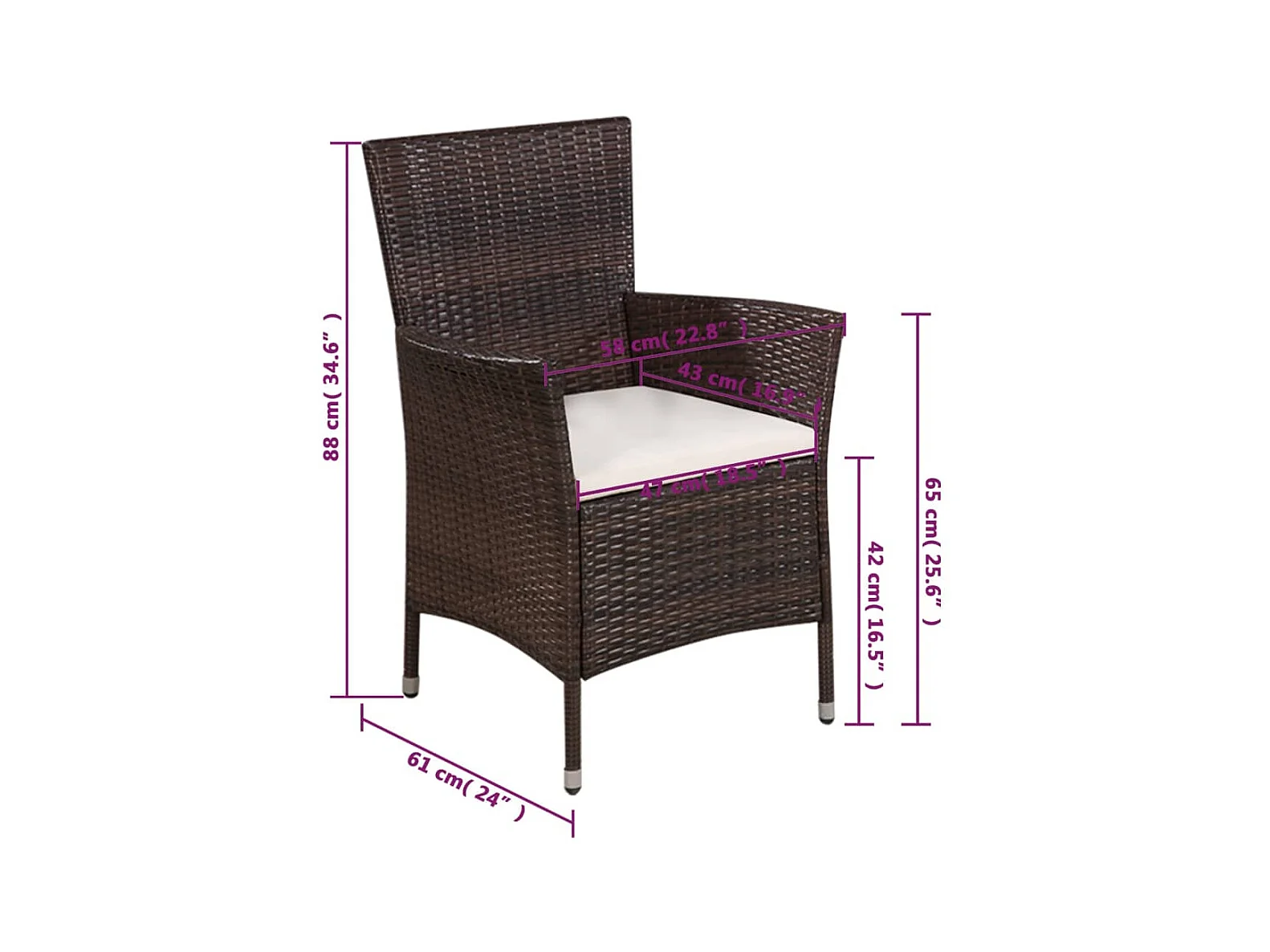 Sillas jardín y cojines 2 uds ratán sintético marrón 54x61x83cm ES30304