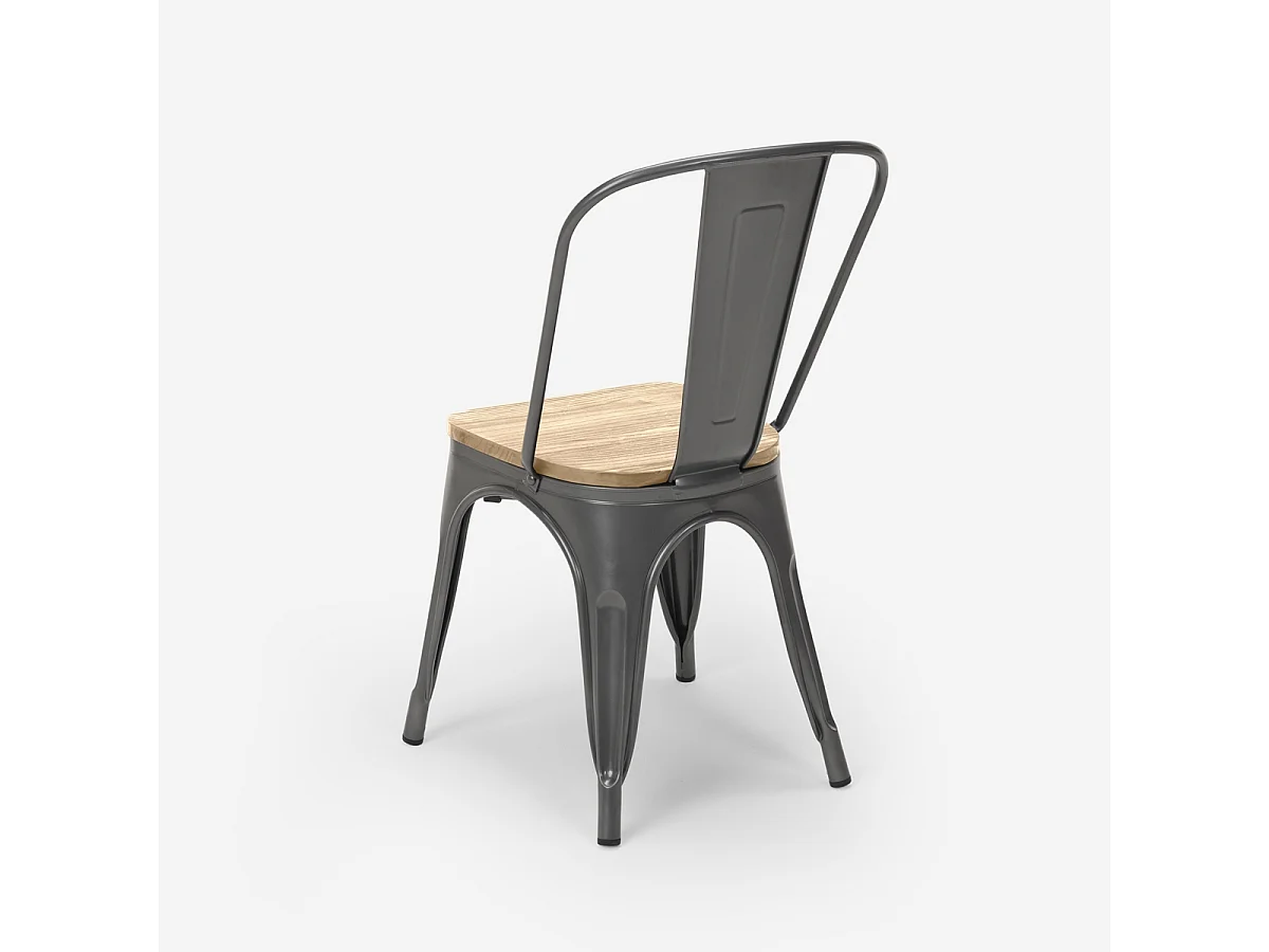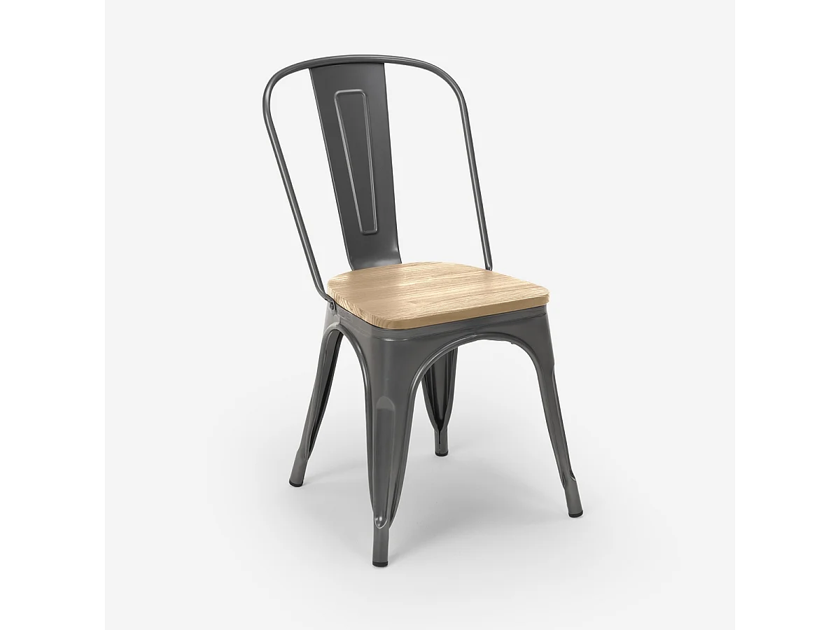 sillas de comedor de metal y madera estilo industrial steel wood arm light - Gris Oscuro