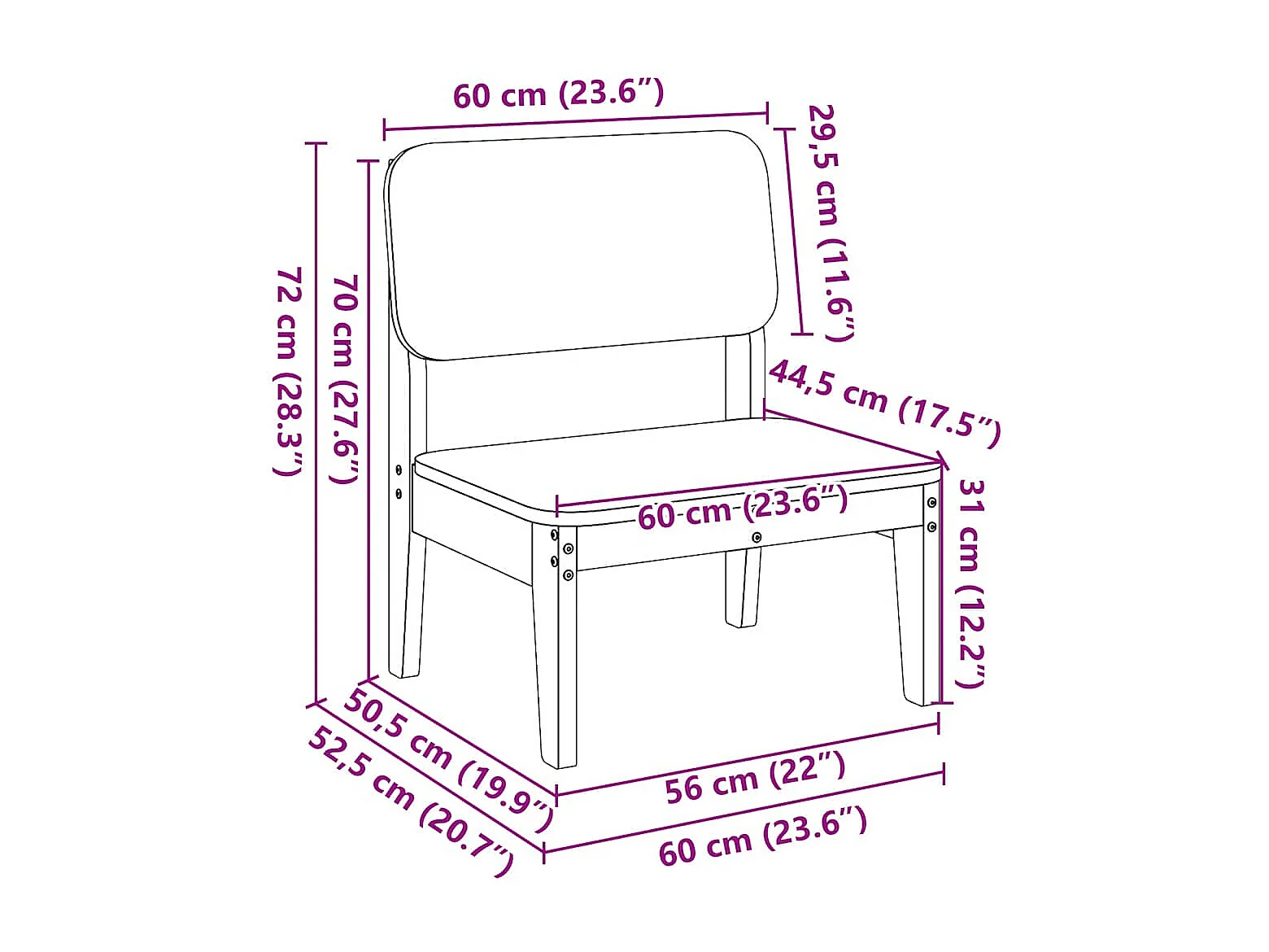 Sillas jardín 2 uds madera maciza pino blanco 60x52,5x72 cm