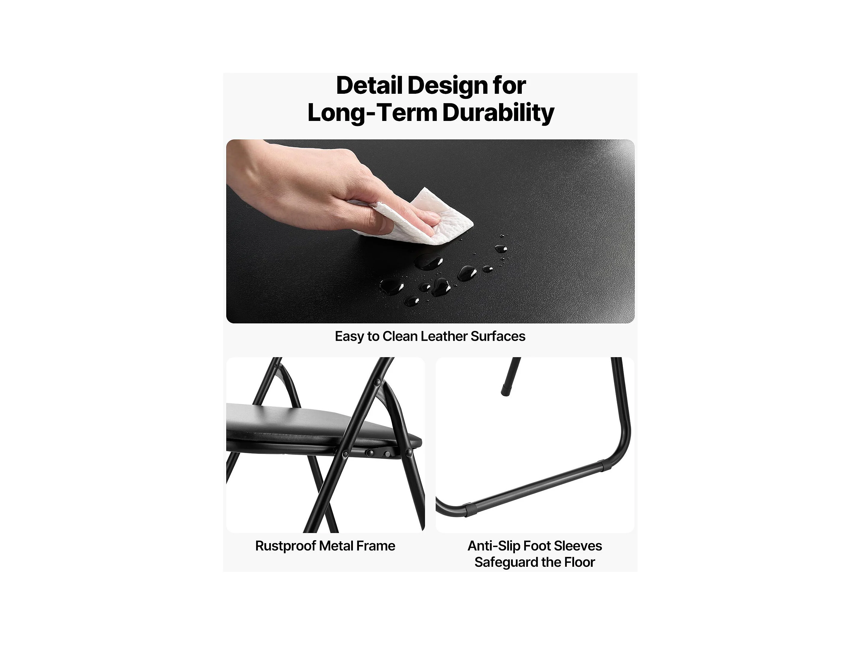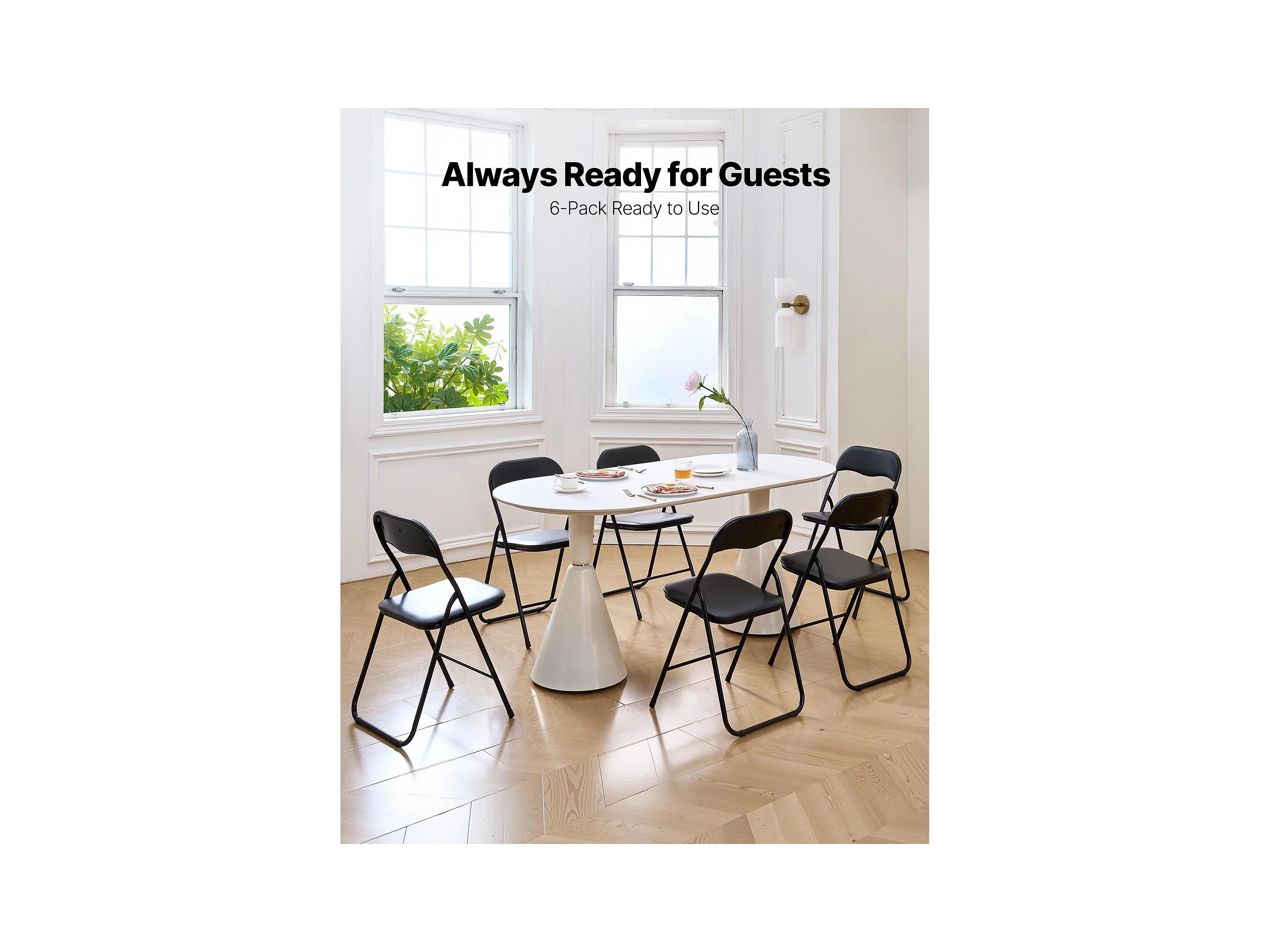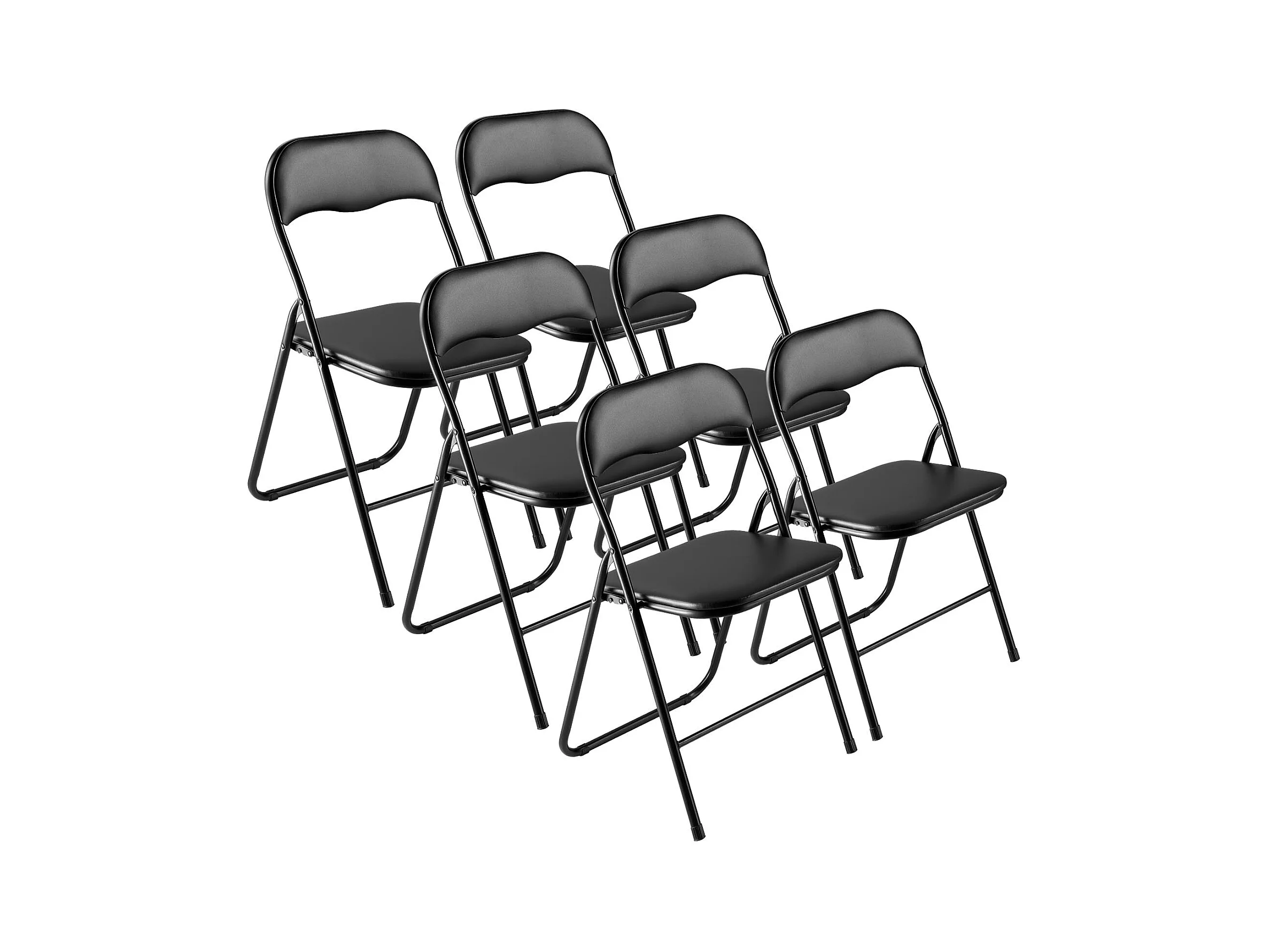 Sillas Plegables Portátiles SucceBuy, Lote de 6, Silla de Comedor de Cuero con Estructura de Metal y Cojín Acolchado, para Interior y Exterior, Negro