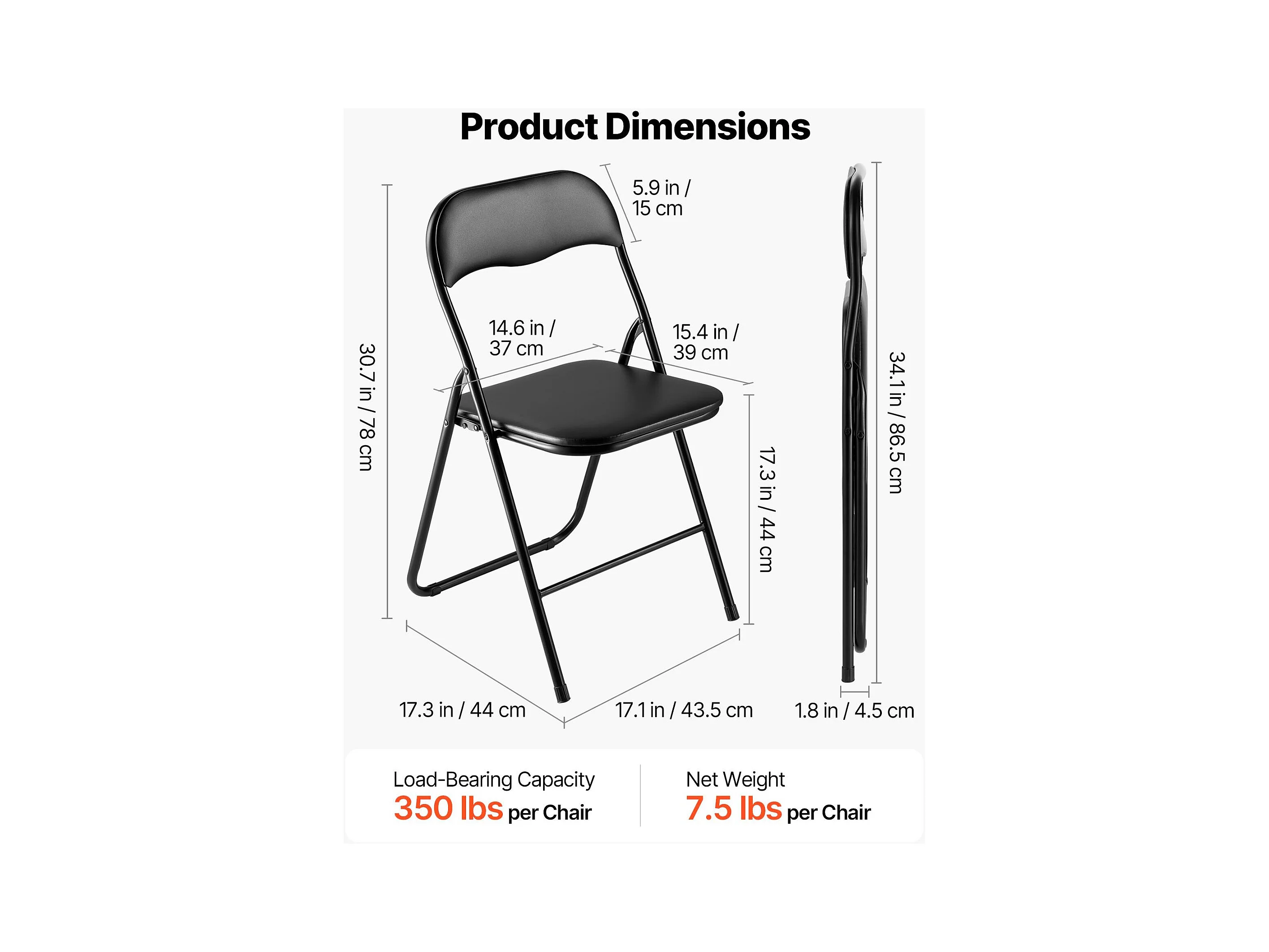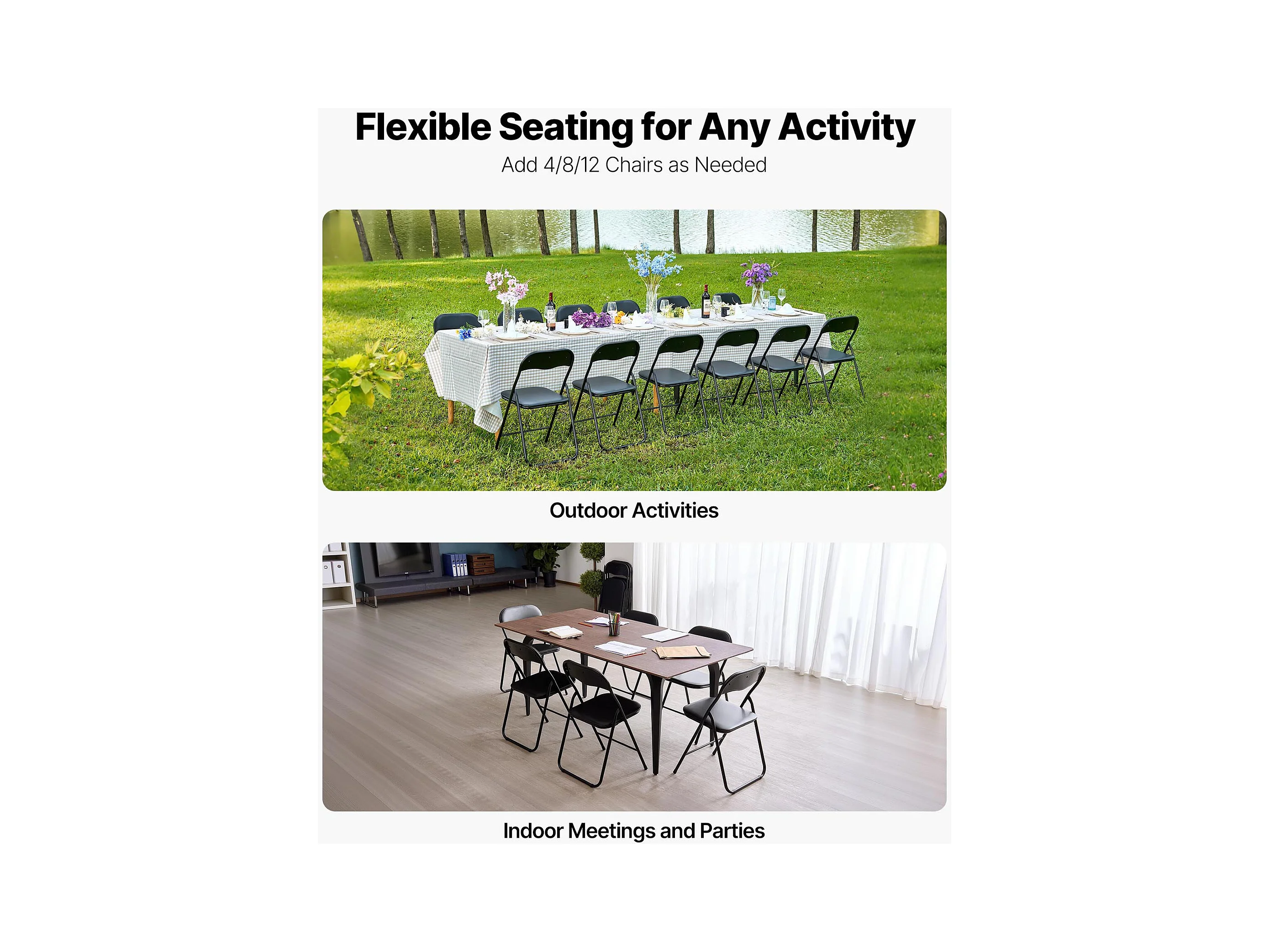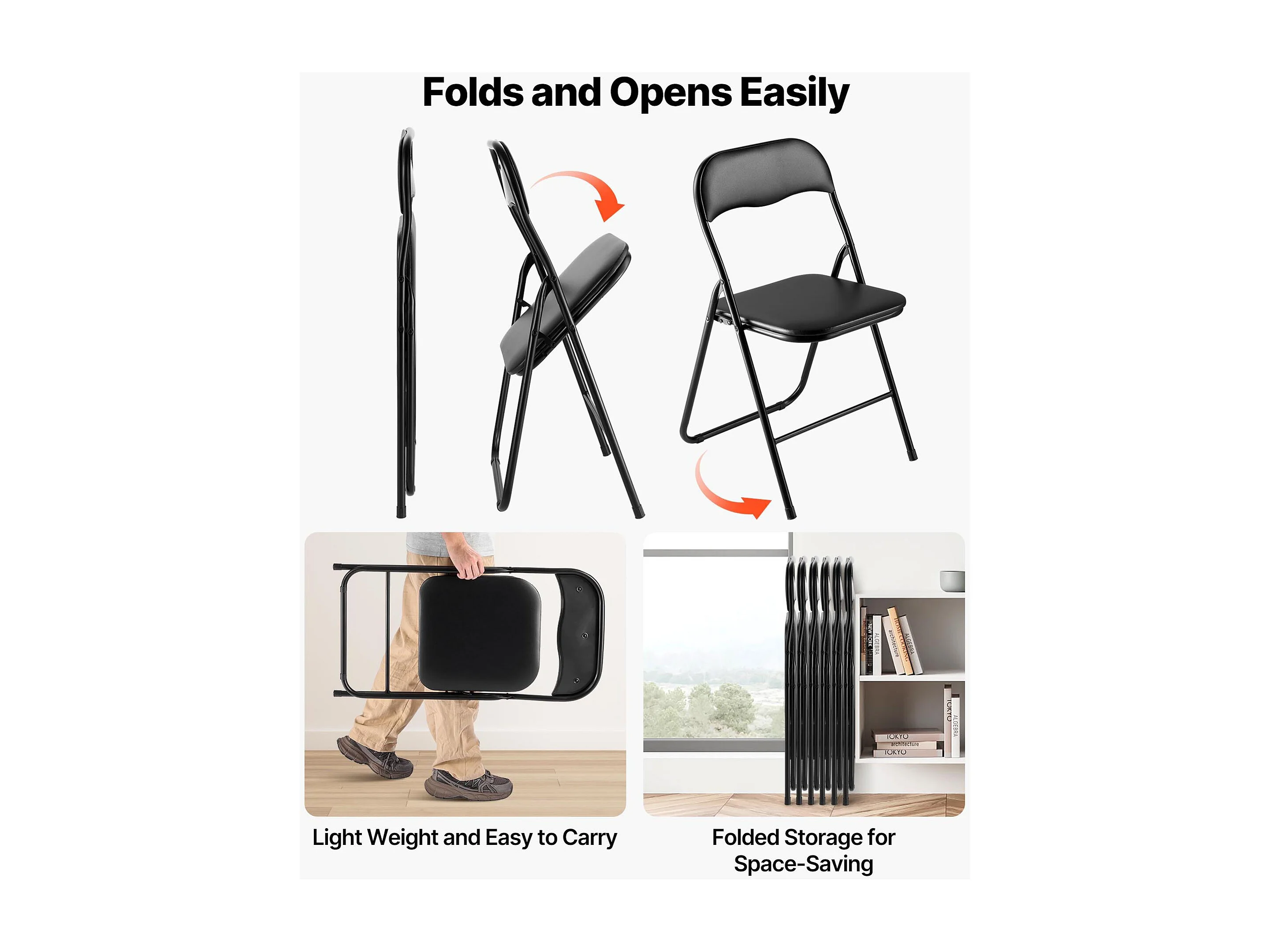 Sillas Plegables Portátiles SucceBuy, Lote de 6, Silla de Comedor de Cuero con Estructura de Metal y Cojín Acolchado, para Interior y Exterior, Negro