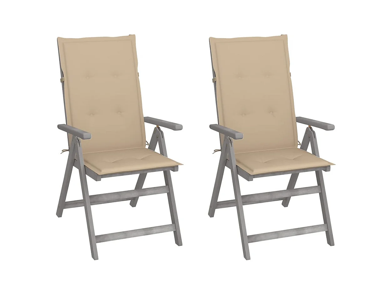 Sillas reclinables jardín y cojines 2 uds madera maciza acacia