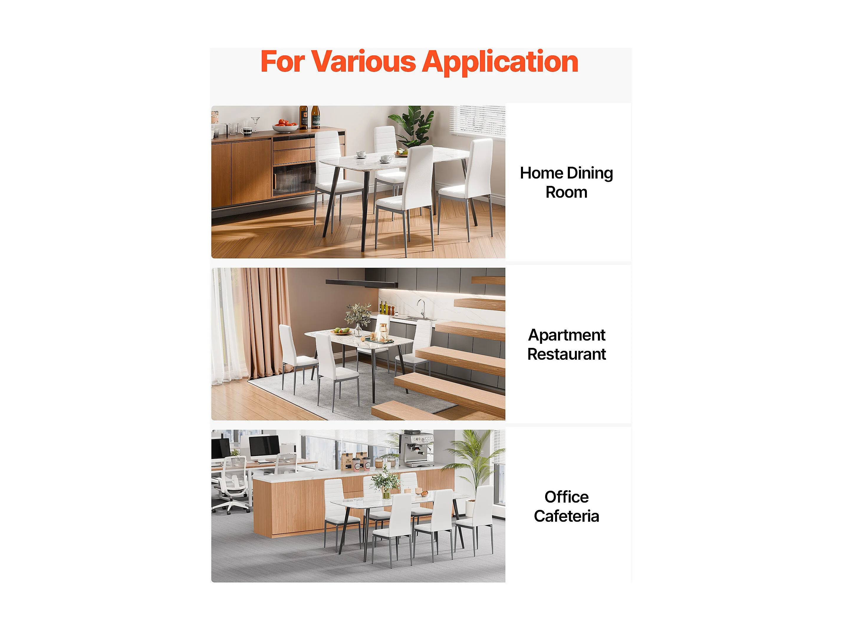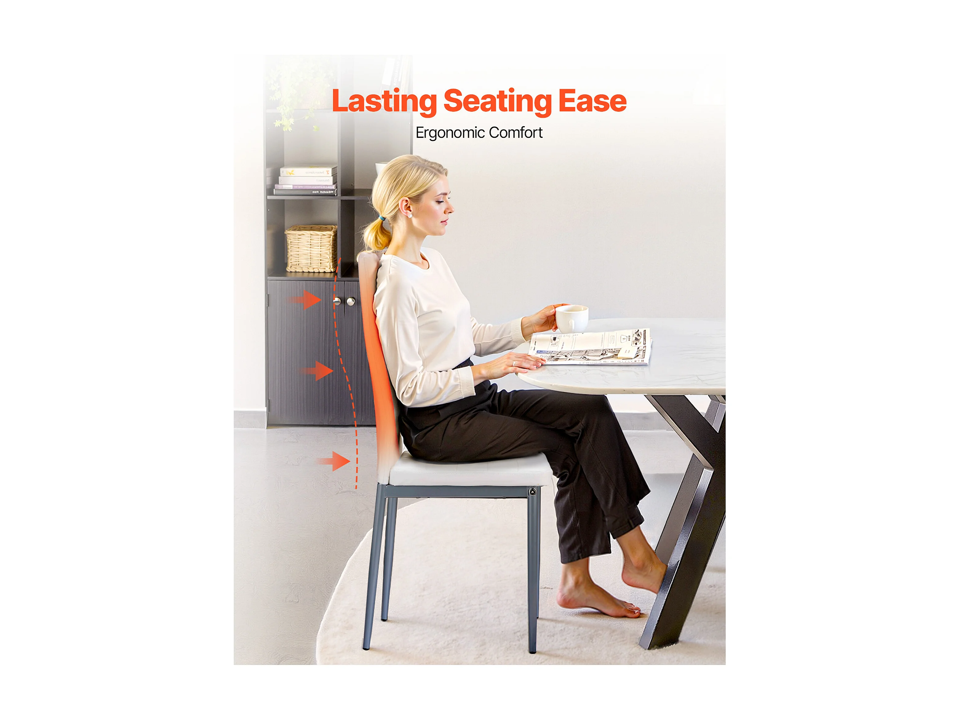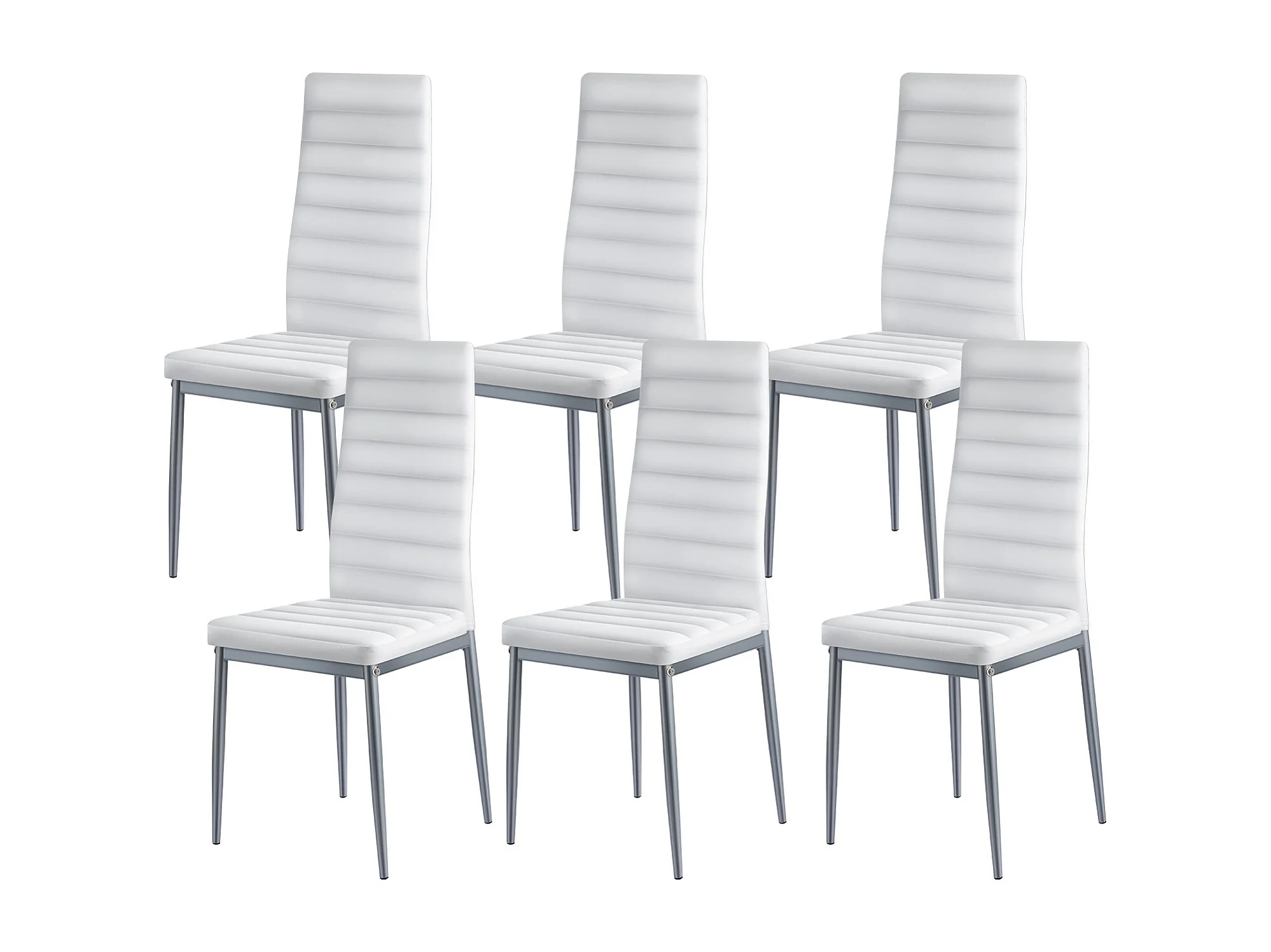 Sillas SucceBuy Comedor Modernas, Juego de Sillas de Cocina de Cuero 6 Piezas, con Respaldo, Cojines Gruesos y Patas de Metal, Blanco