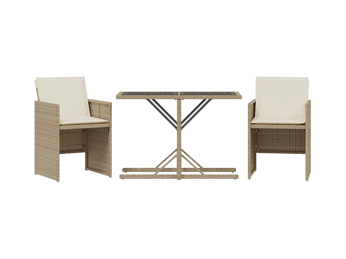 Mesita y sillas con cojines 3 pzas ratán PE madera acacia beige ES767592