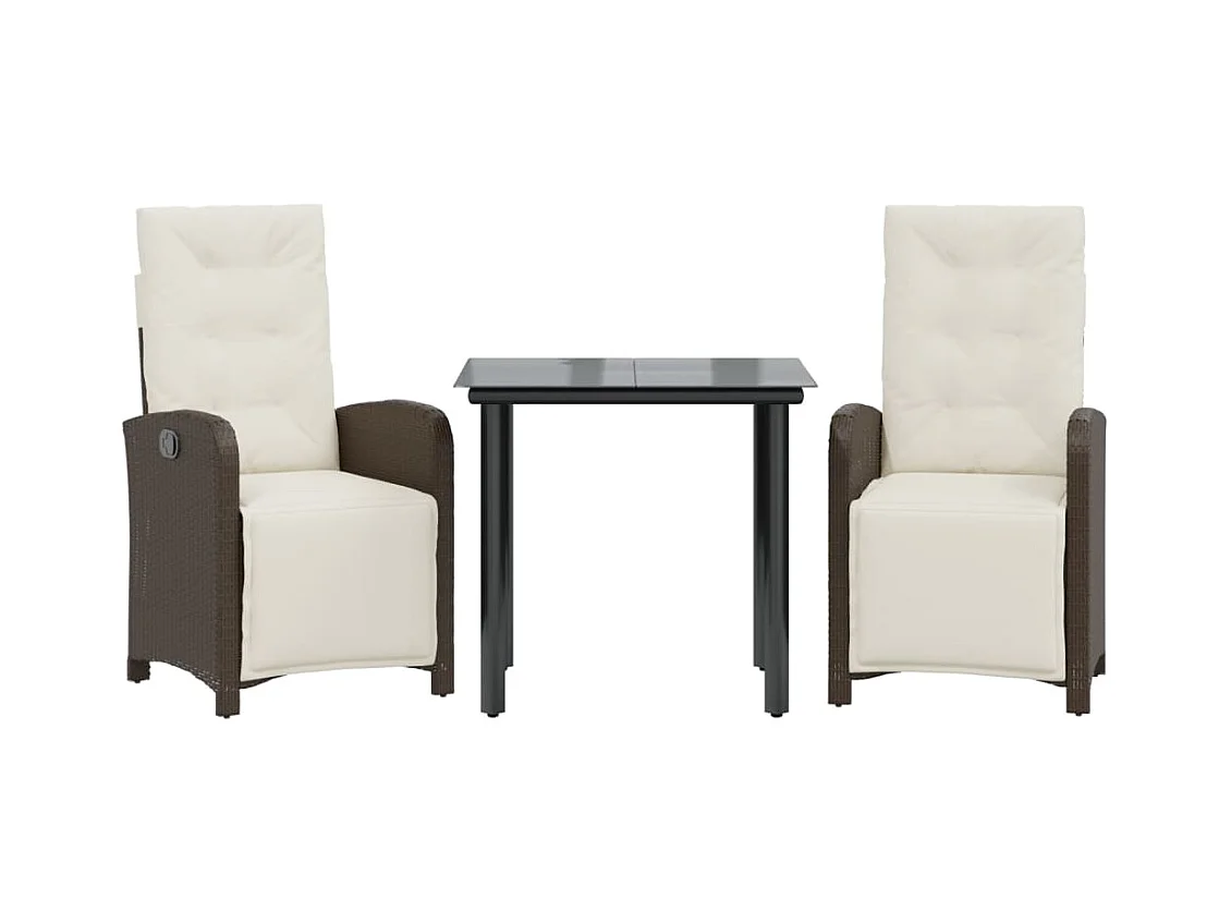 Set comedor de jardín 3 piezas y cojines ratán sintético marrón