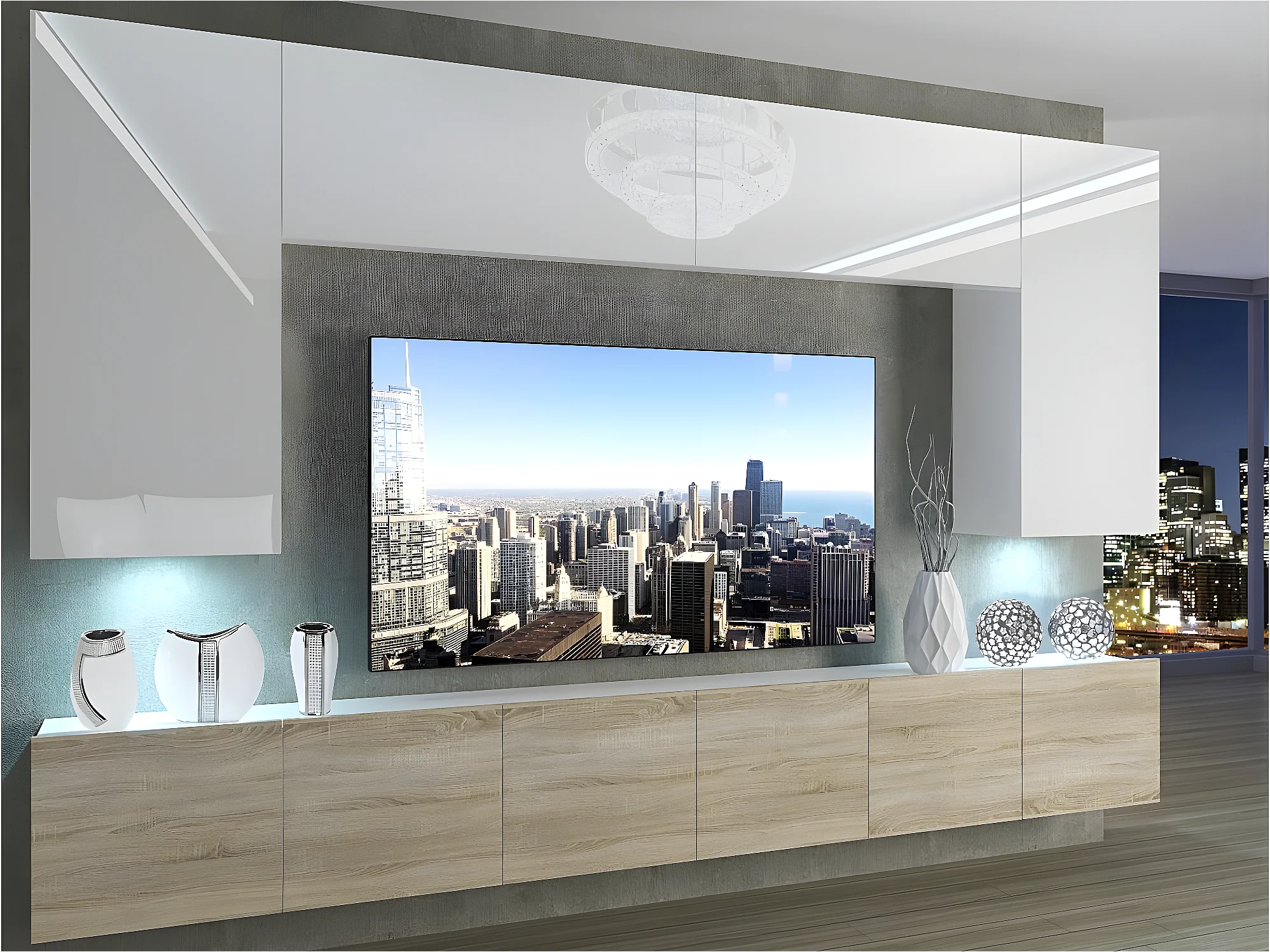 SILLEA | Conjunto de muebles de TV | Unidad de pared de estilo moderno | Ancho 300 cm | Pared de TV colgante con acabado brillante