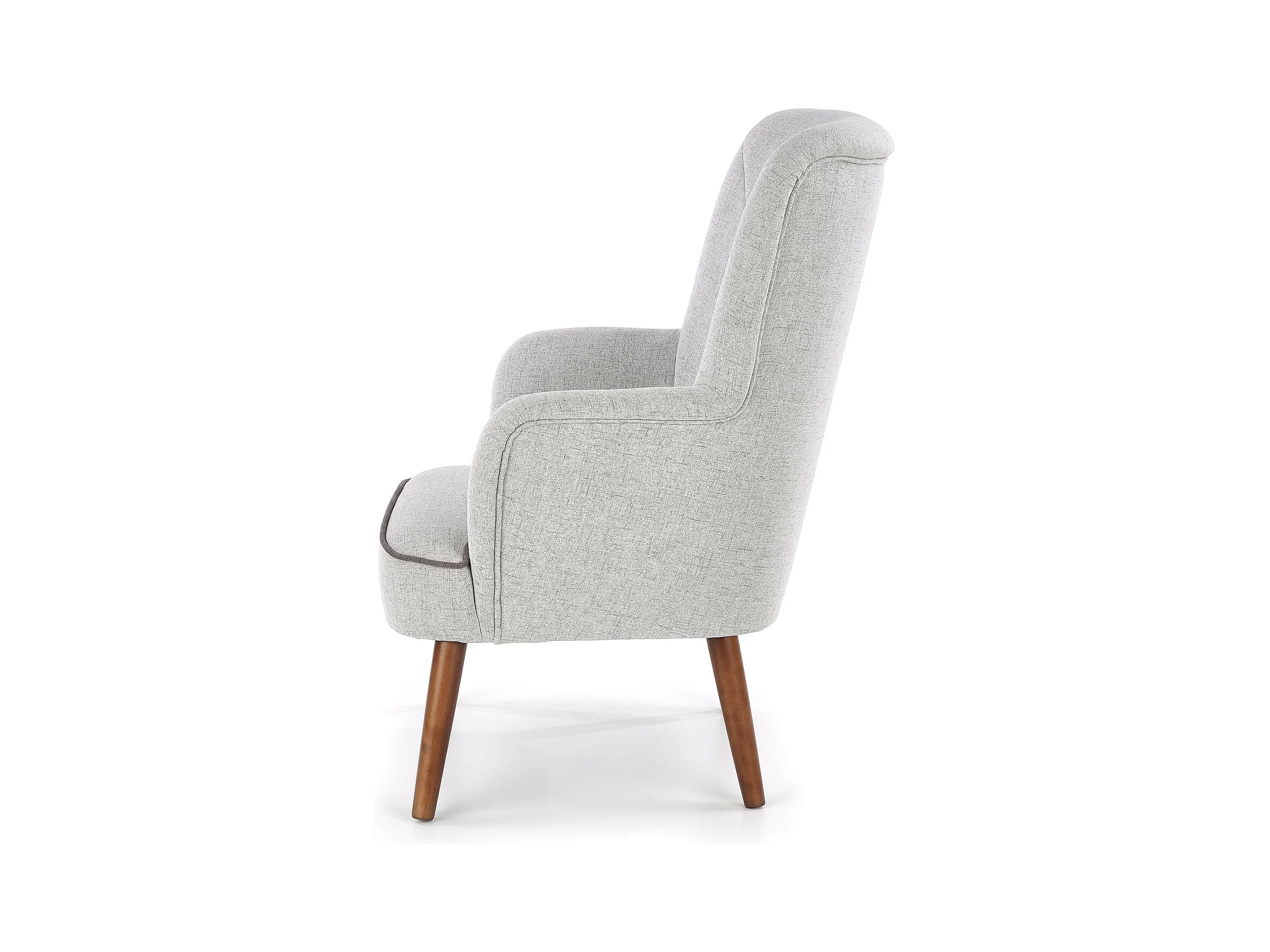 Sillón Achille de tela gris y diseño de madera