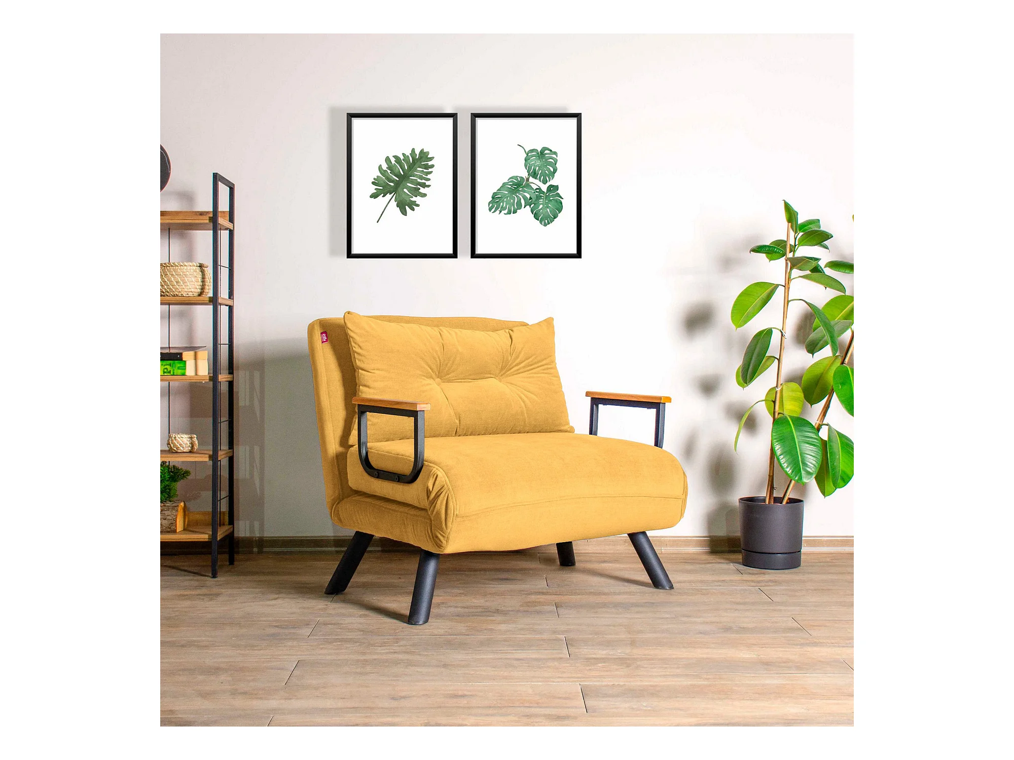 Sofá cama individual OLDEN Tela Mostaza