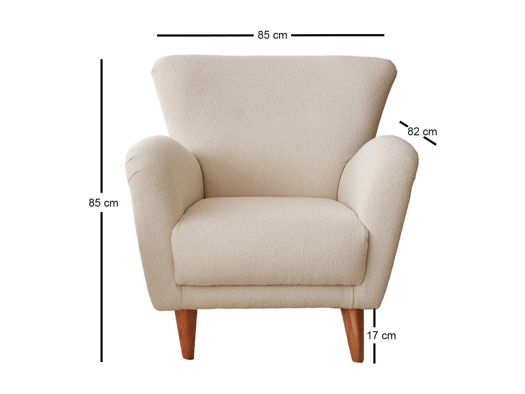 Sillón bouclé con reposabrazos, asiento ancho acolchado para salón dormitorio blanco