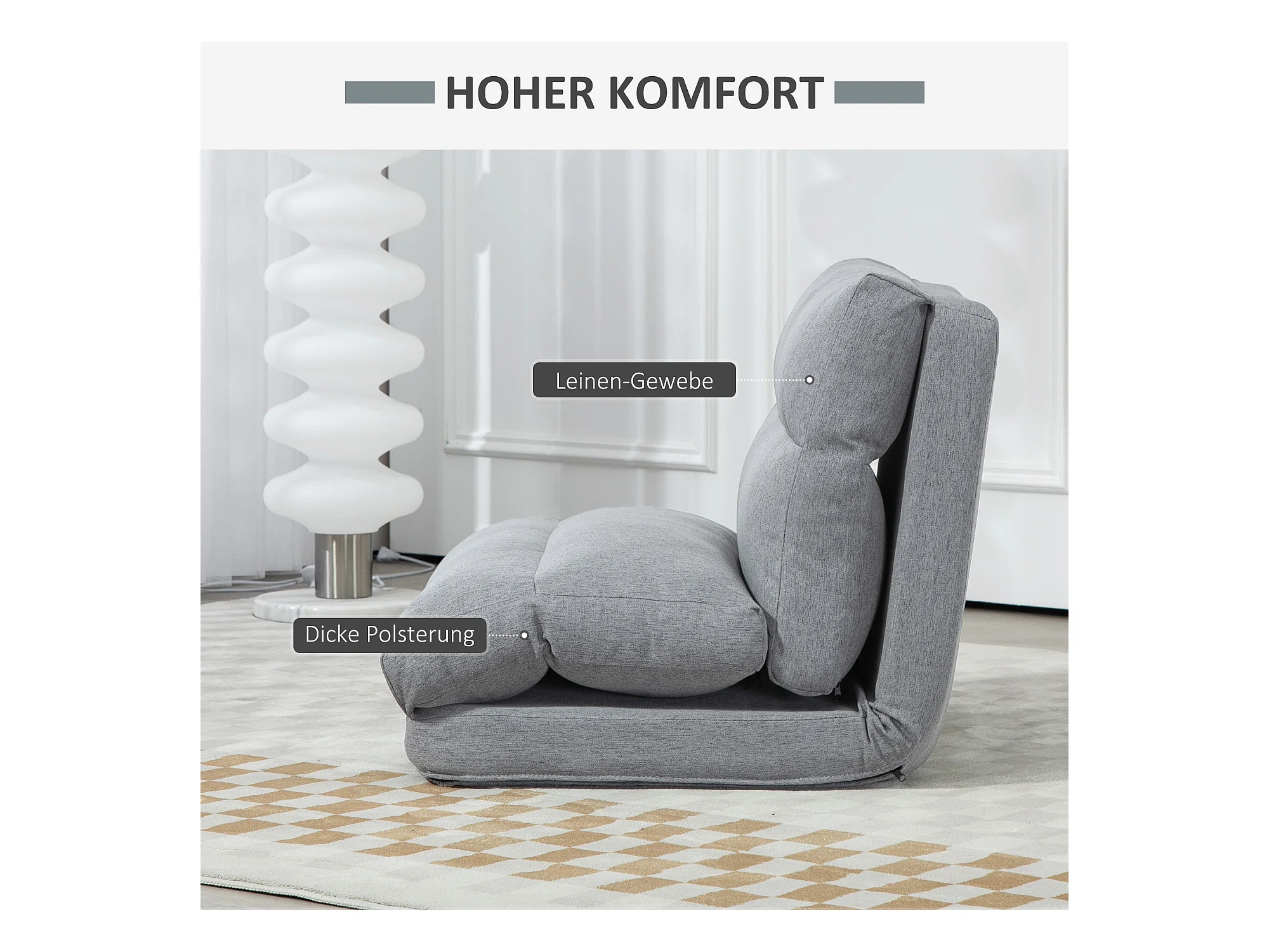 Sillón bajo plegable de lino gris con 6 posiciones, convertible en cama de salón 70x41x56 cm