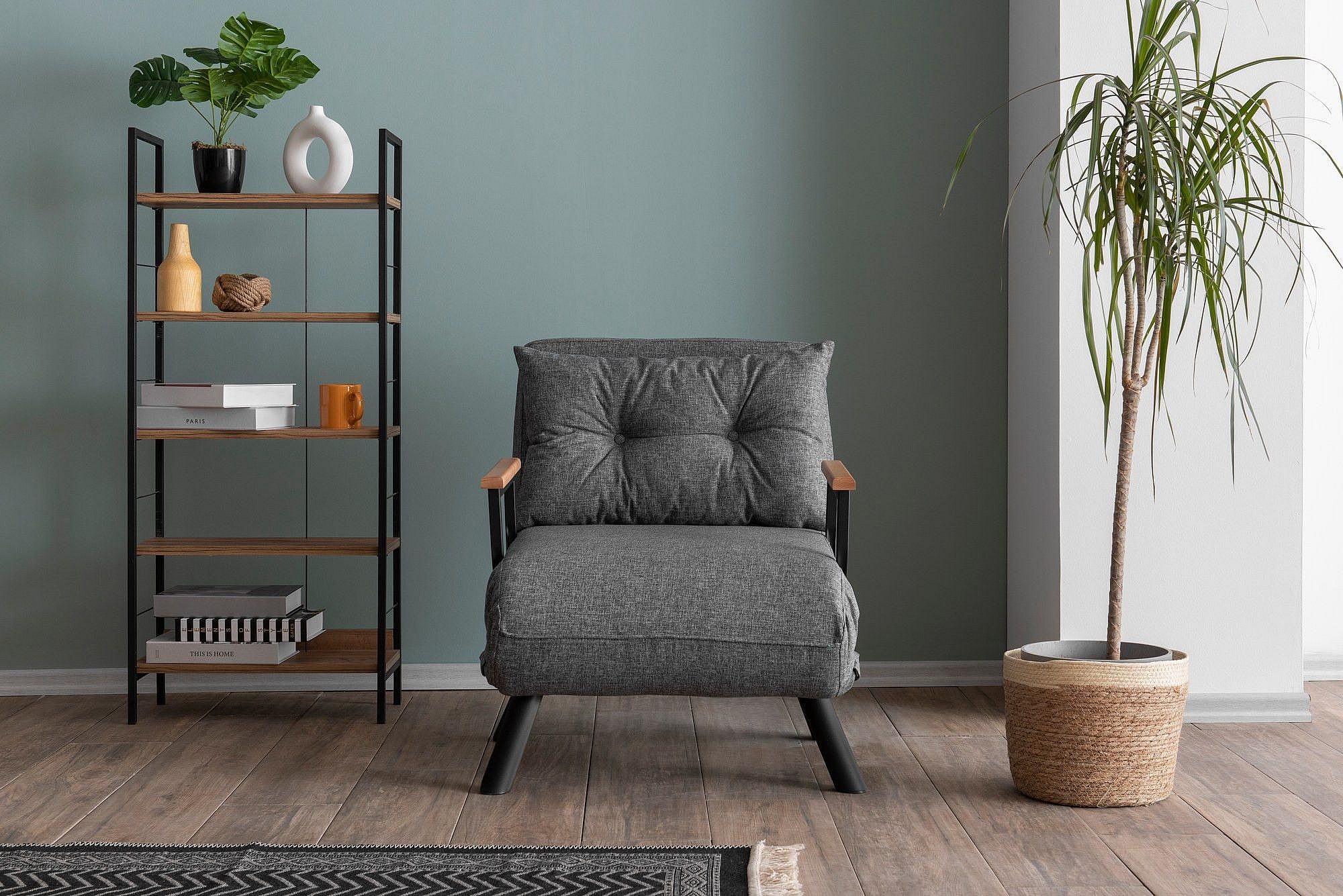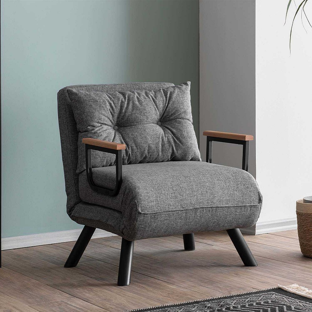 Sillón-Cama – 175 cm x 60 cm – Gris Claro – Metal y Tela de Lino