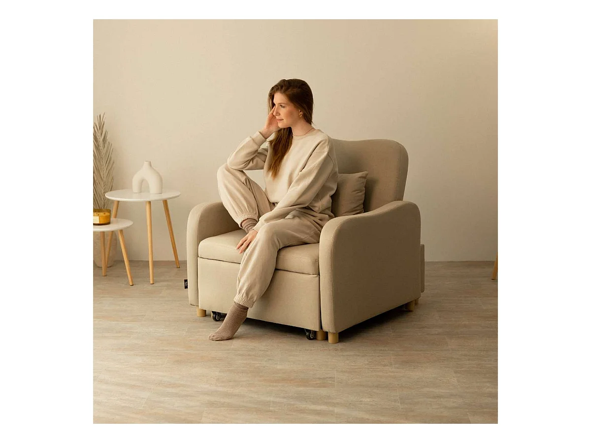 Sillón convertible borreguito base de madera, 1 plaza crema