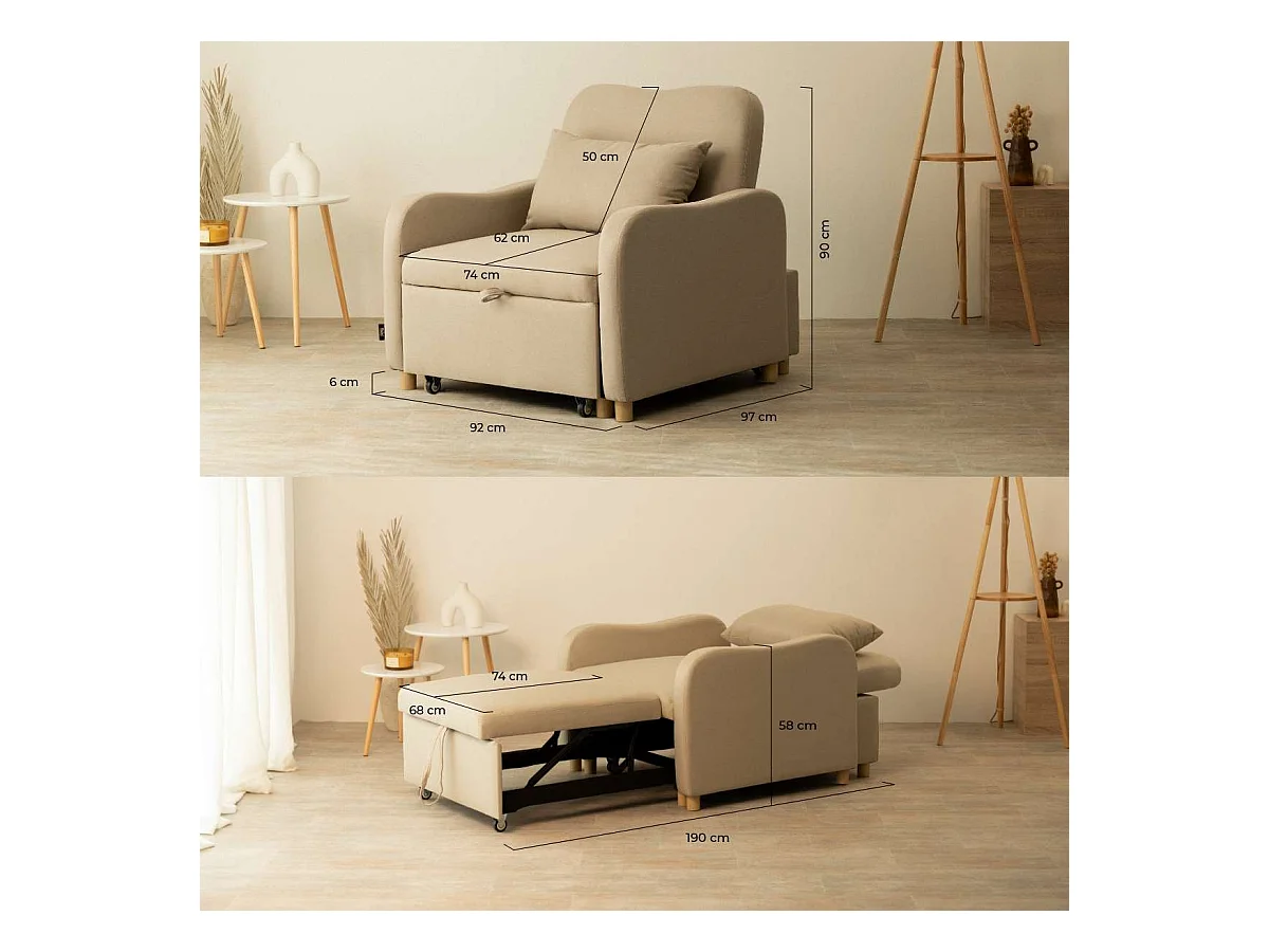 Sofá plegable multifunción - con puertos de carga USB - con soporte para teléfono - Tejido de pana - Beige