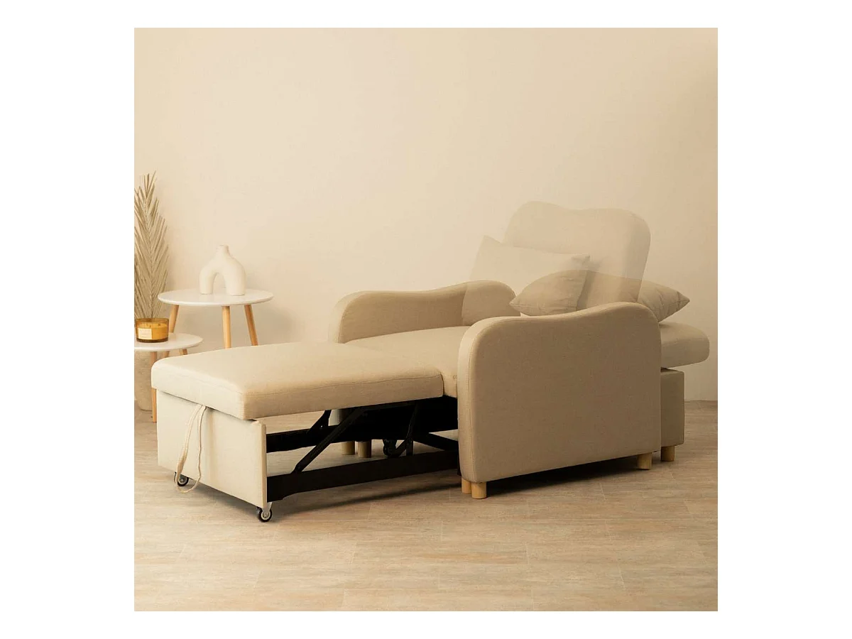 Sofa cama Dabari, Sofá individual, 100% Made in Italy, Sillón de salón con apertura trolley, en tela acolchada, con reposabrazos estándar, Cm 110x90h85, Beige
