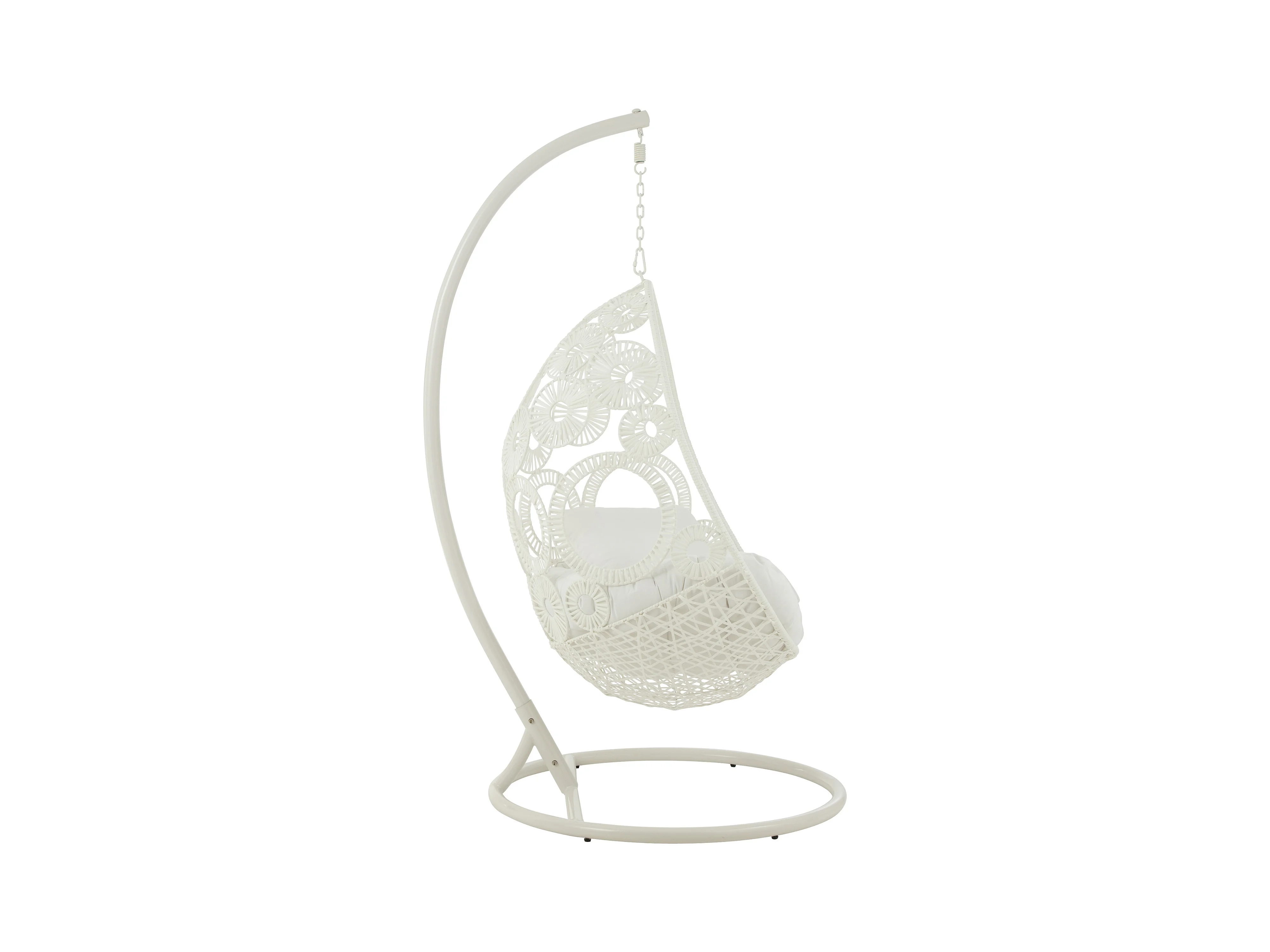 Sillón colgante ovalado de acero con efecto ratán natural BINO – Elegancia aérea-Color Blanco