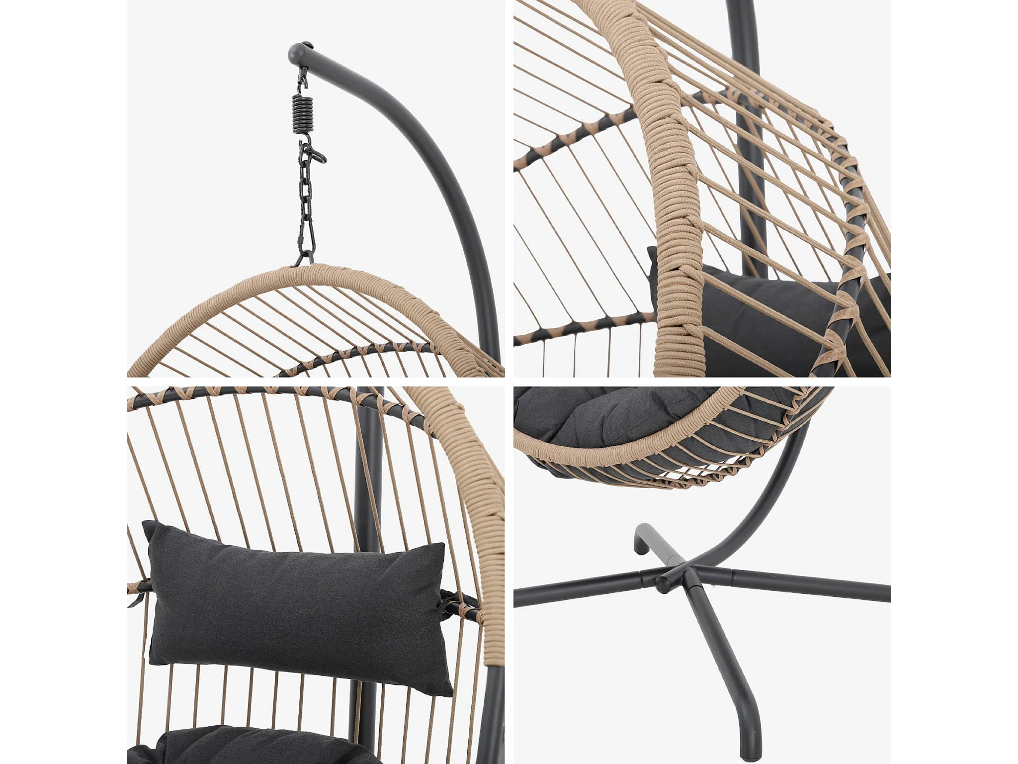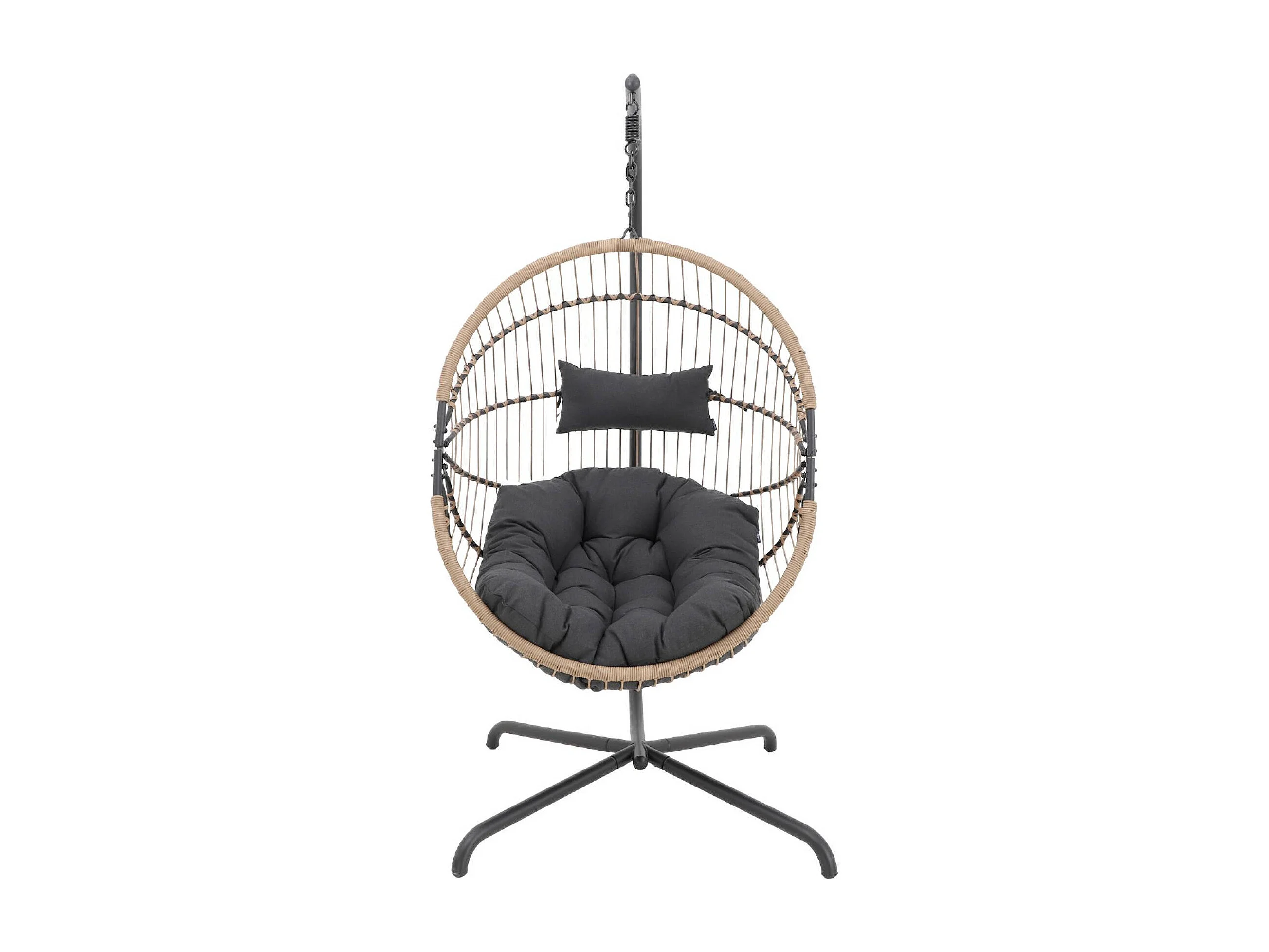 Sillón colgante de jardín tipo huevo de acero y poliéster beige