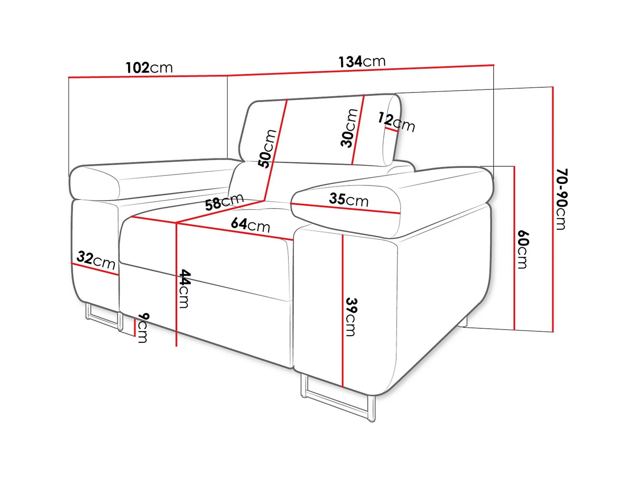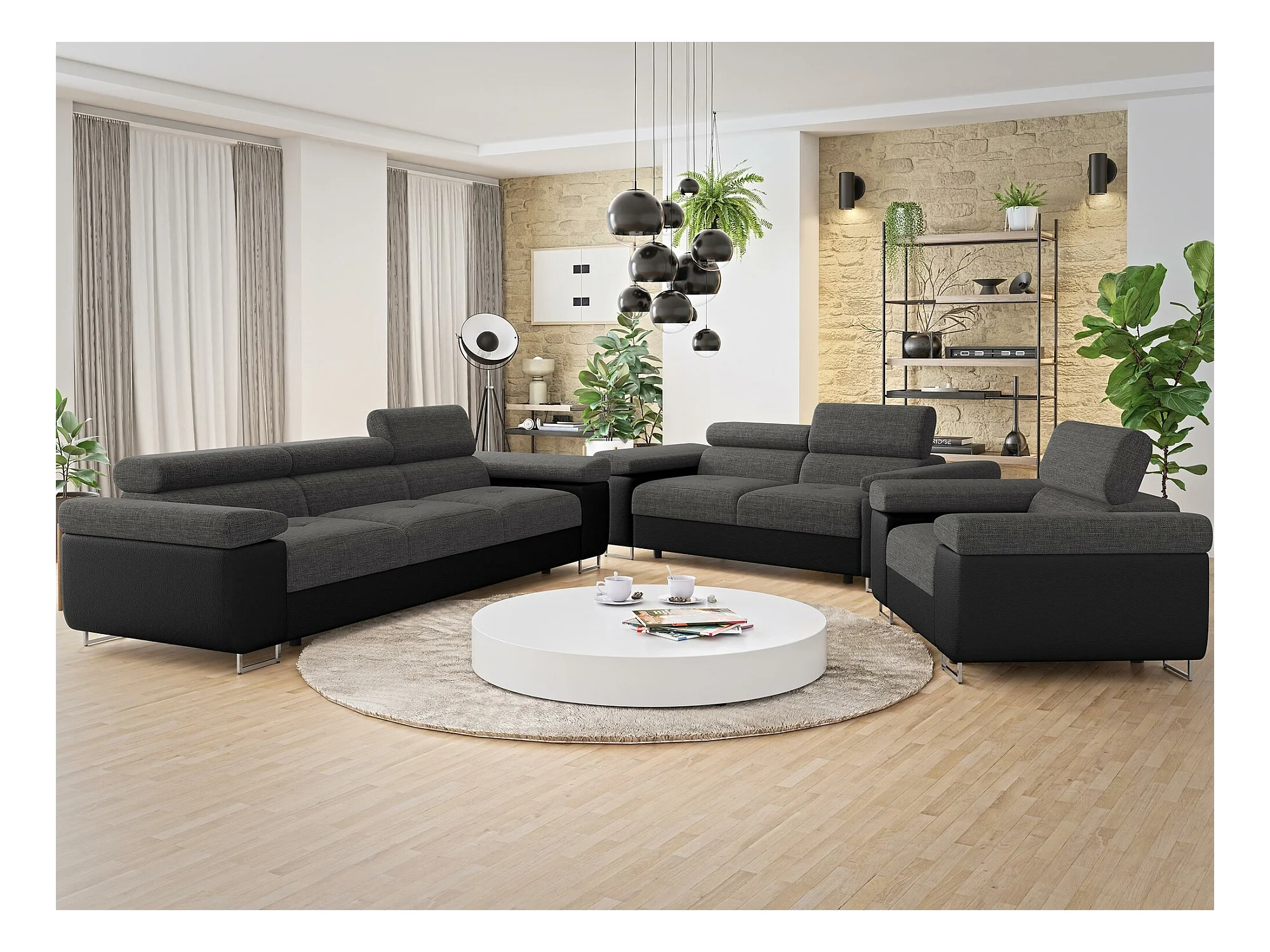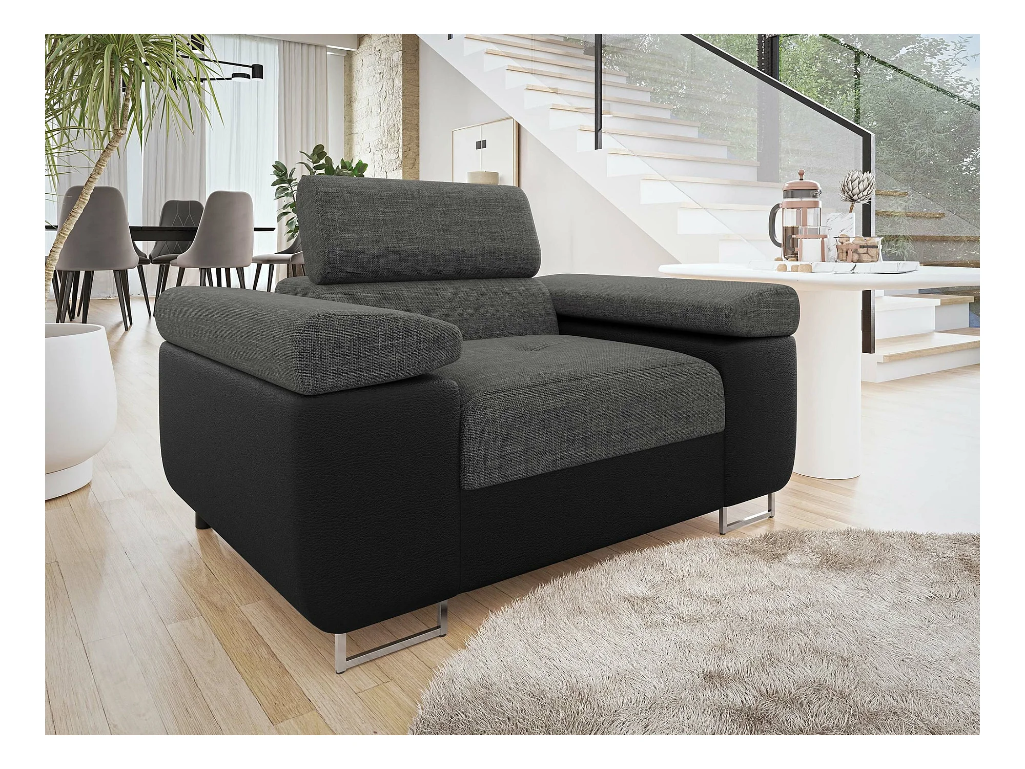 Sillón Comfivo Eliferu 106, Gris, 70x134x102cm, Cuero ecológico + Tapiz, Patas: Metal