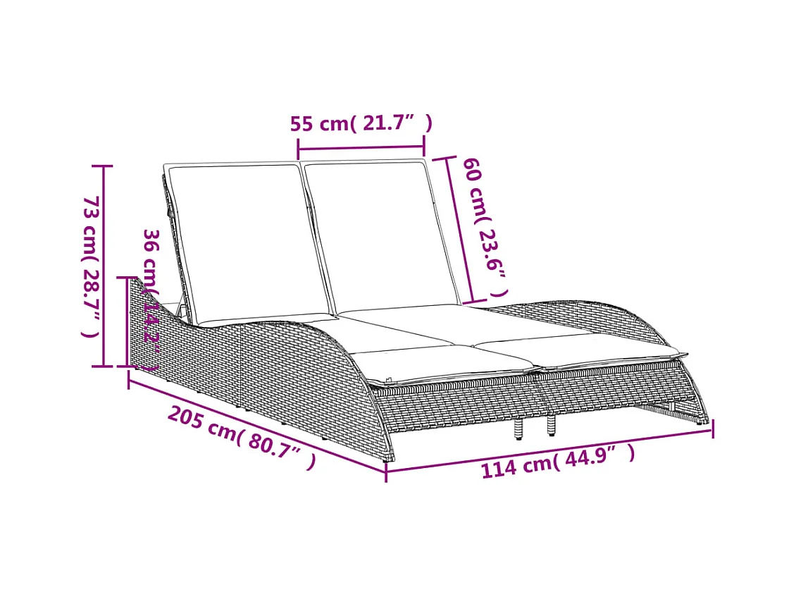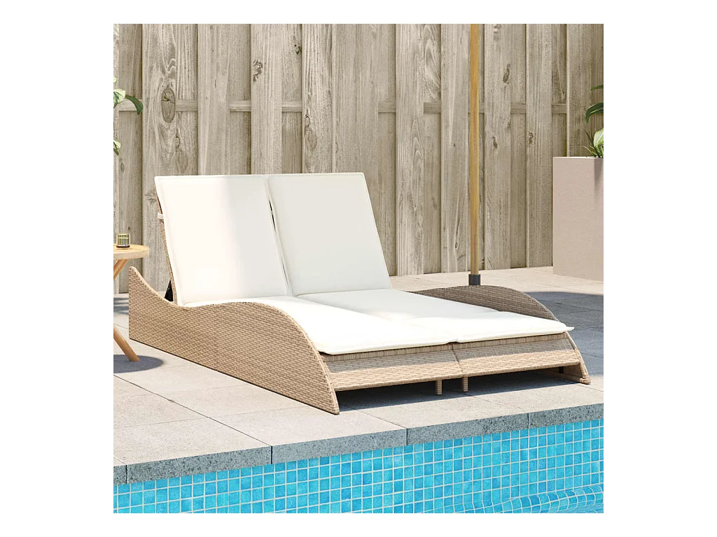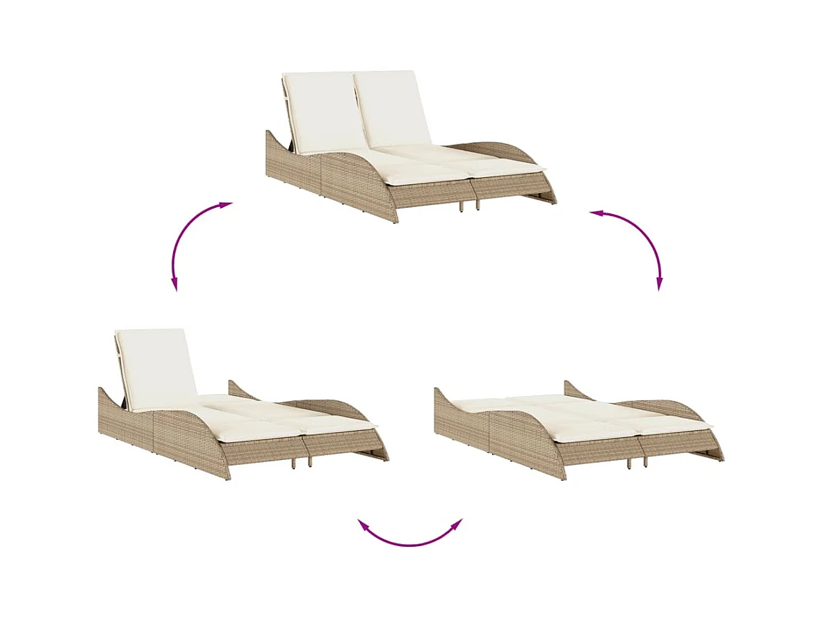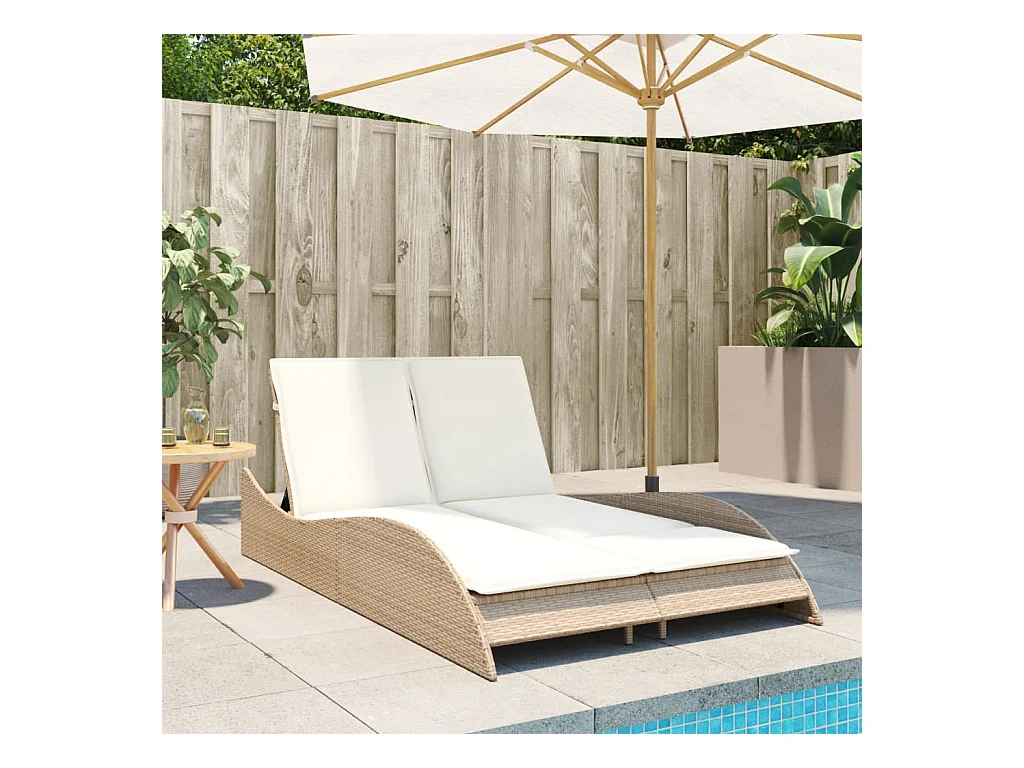 Sillón con cojines beige 114x205x73 cm resina tejida