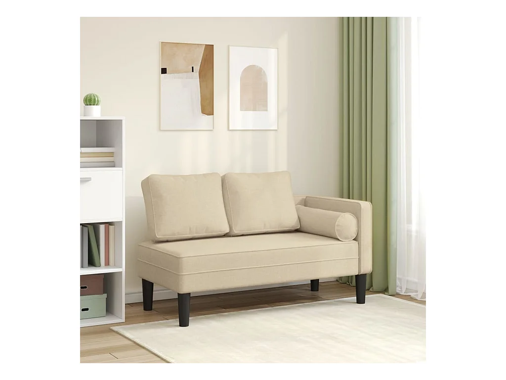 Sillón con cojines de tela color crema.