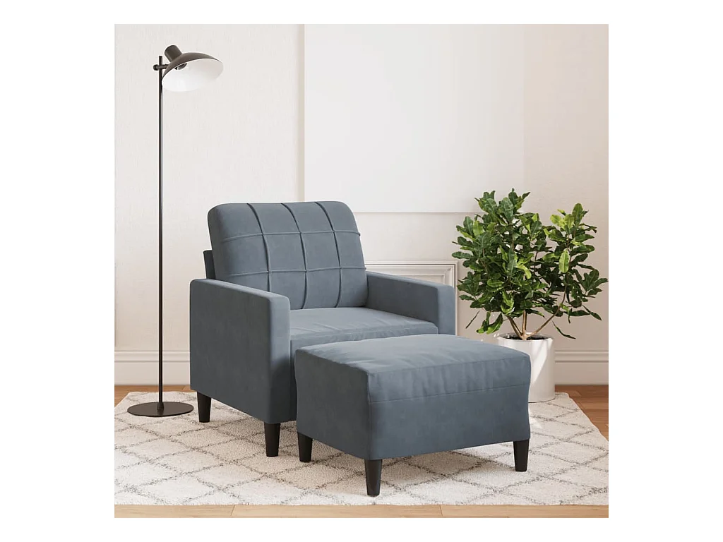 Sillón con reposapiés Gris oscuro 60 cm Terciopelo