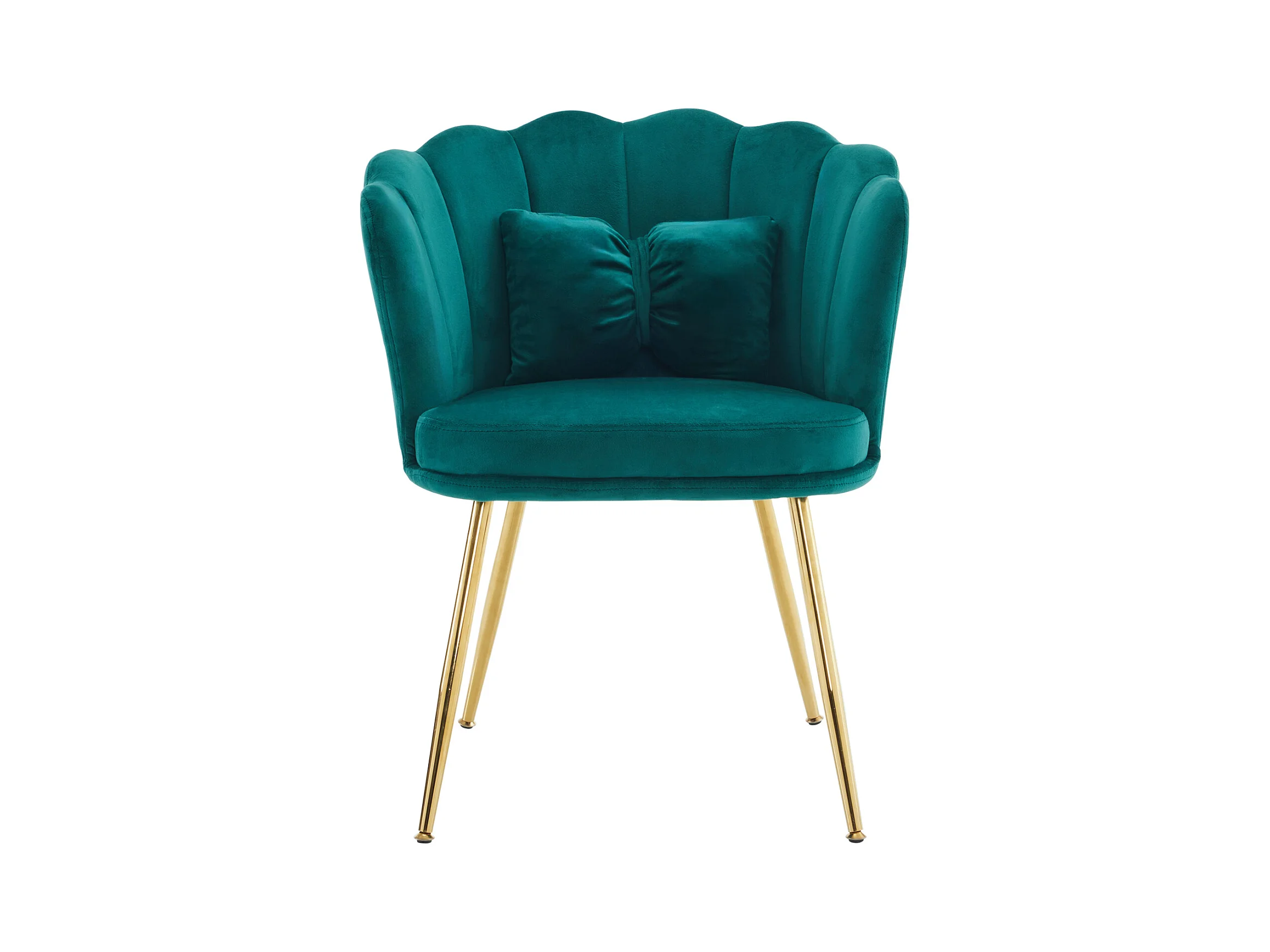 Sillón con respaldo en forma de pétalos, cojines en forma de mariposa, terciopelo, verde