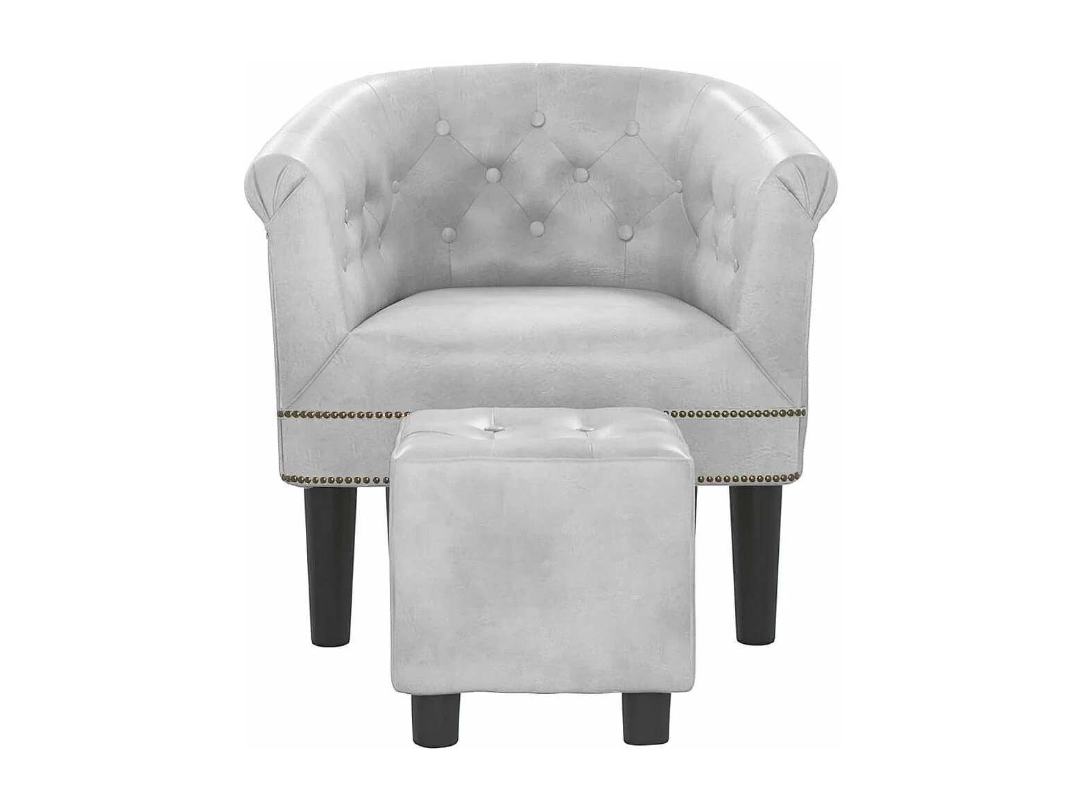 Sillón con taburete cuero sintético plateado