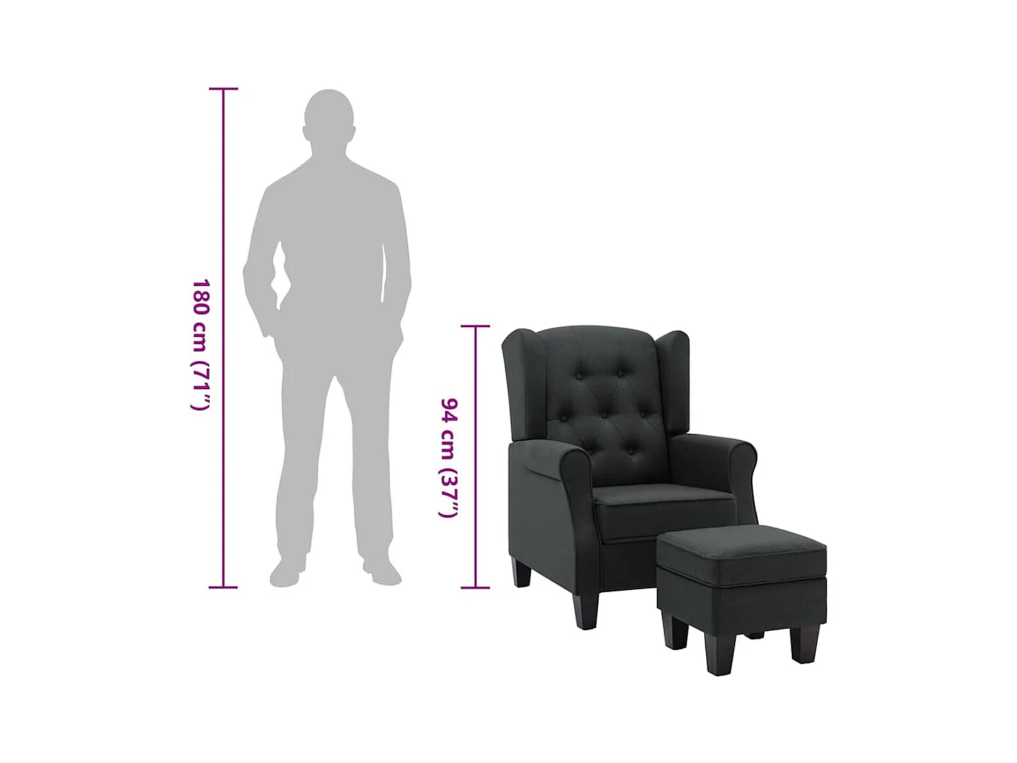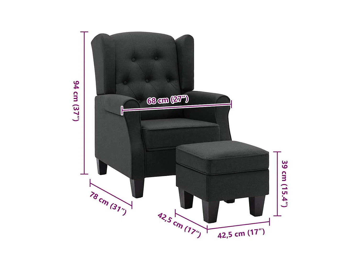 Sillón con taburete tela gris oscuro 60 cm ES341637