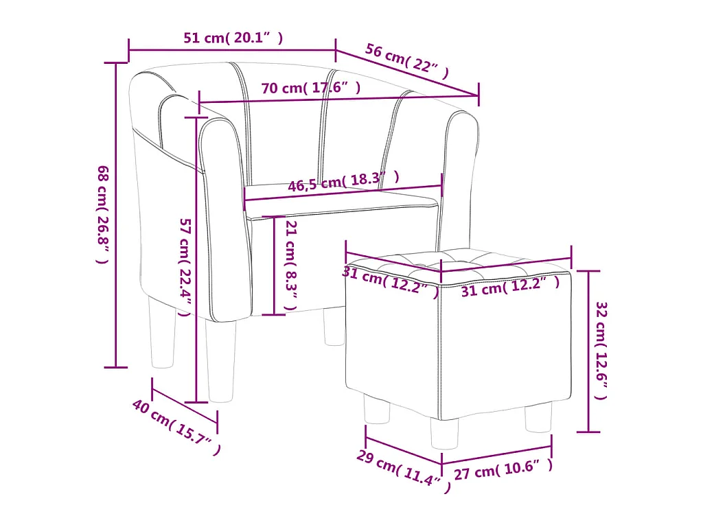 Sillón con taburete terciopelo azul oscuro