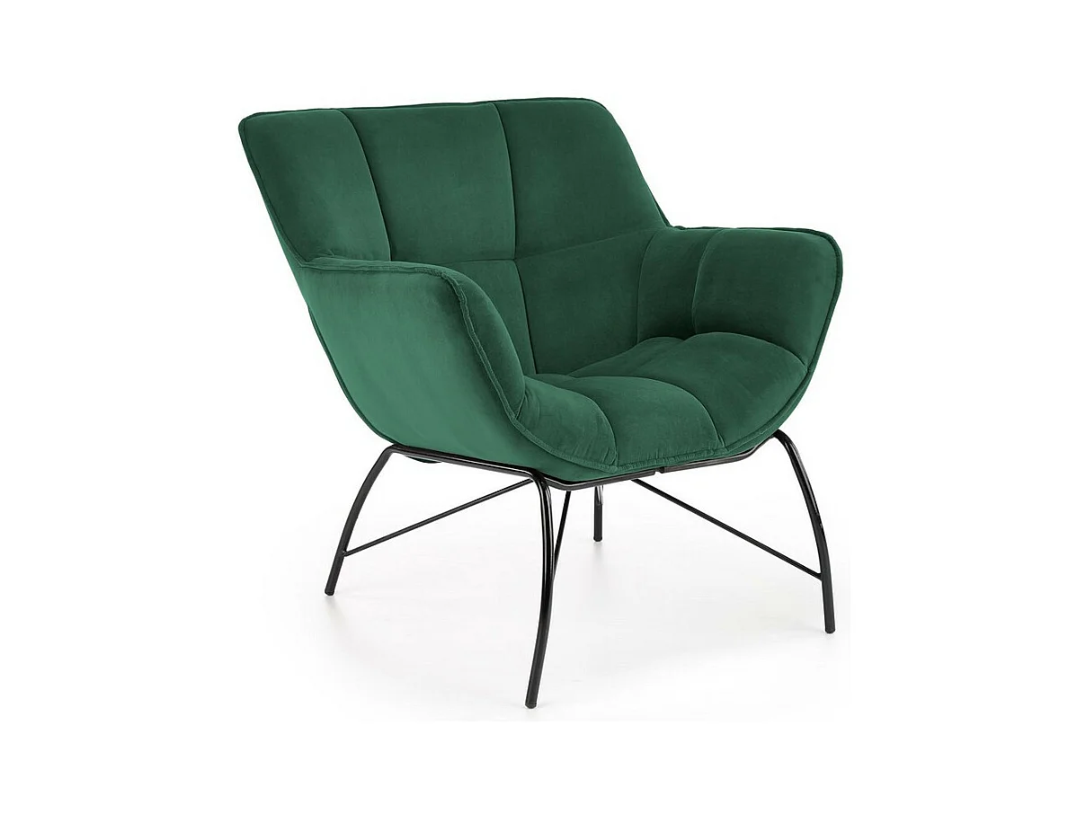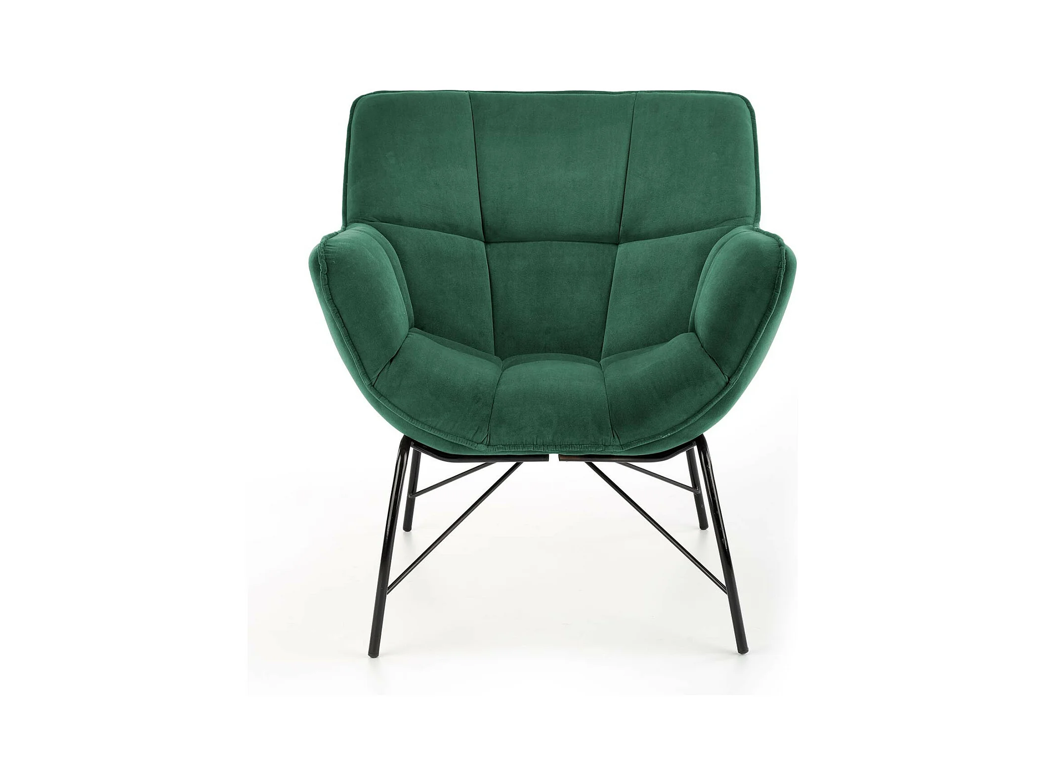 Sillón contemporáneo de terciopelo verde con patas de metal negro de diseño BRIAC