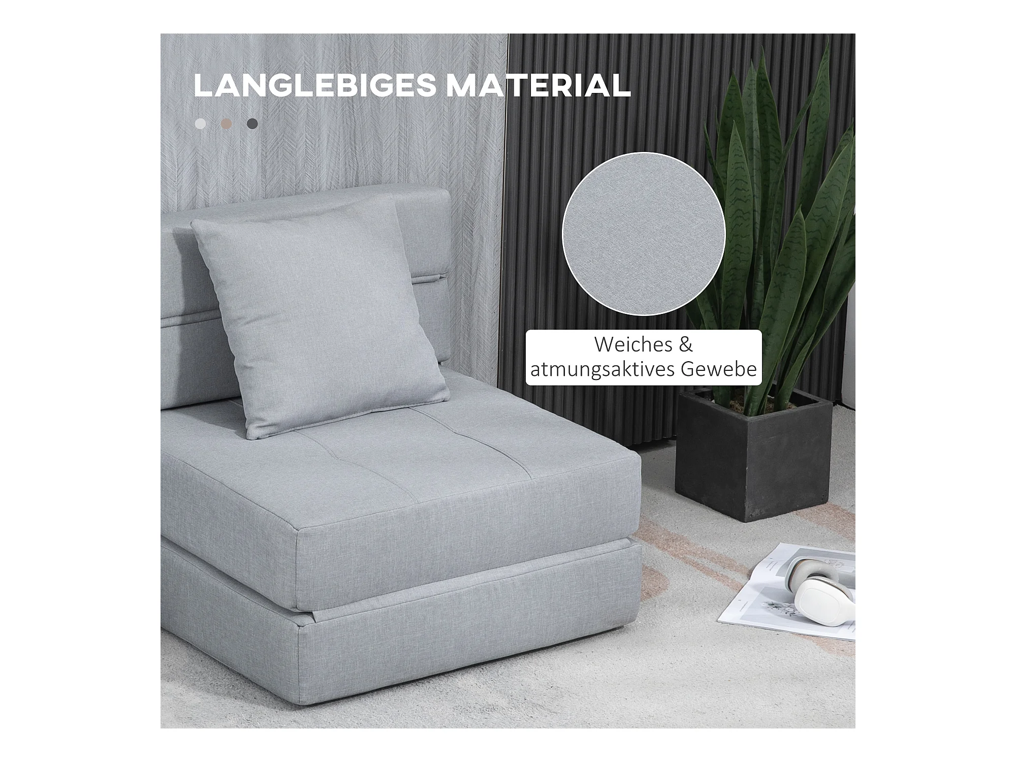 Sillón bajo plegable de lino gris con 6 posiciones, convertible en cama de salón 70x41x56 cm