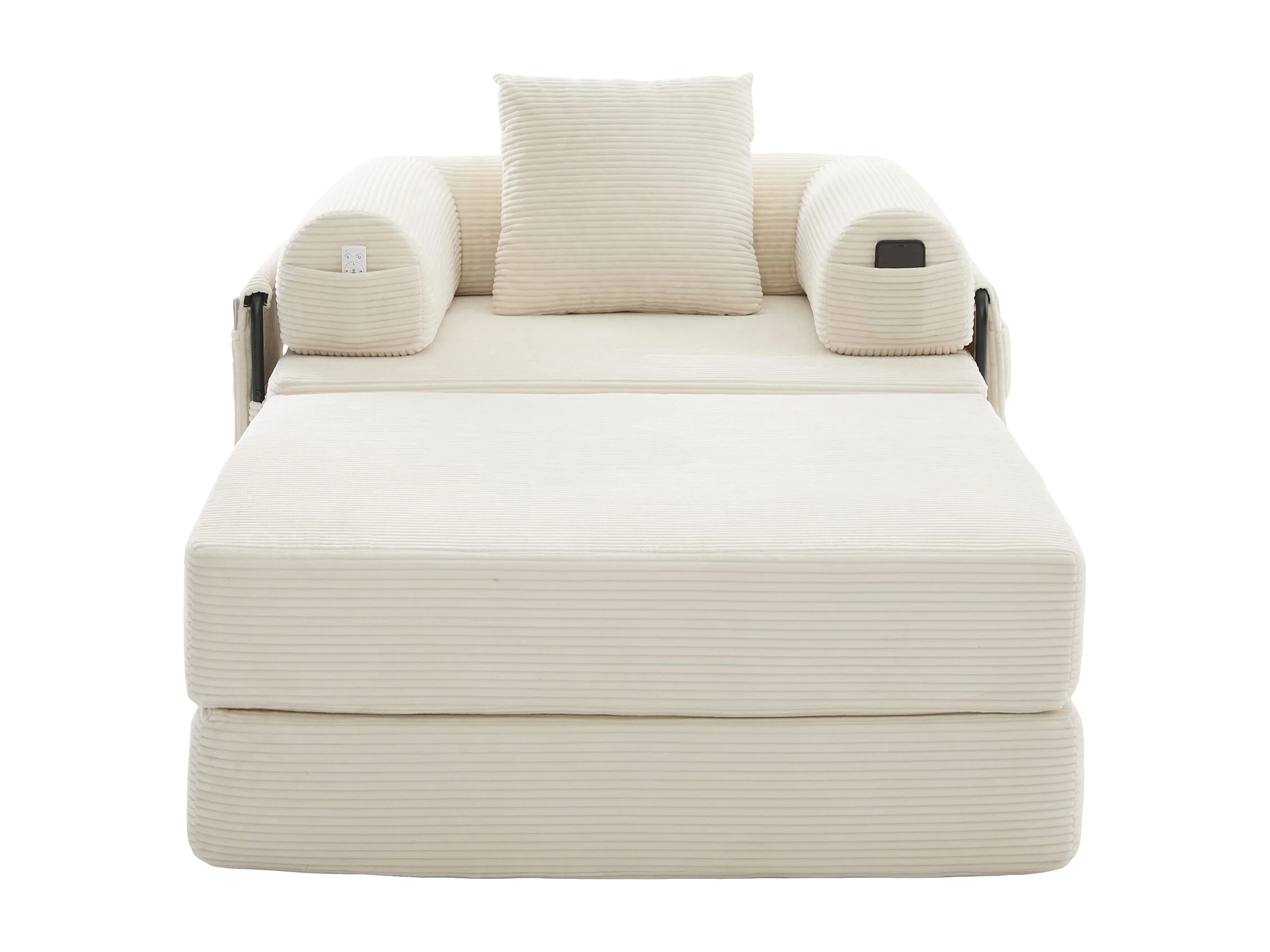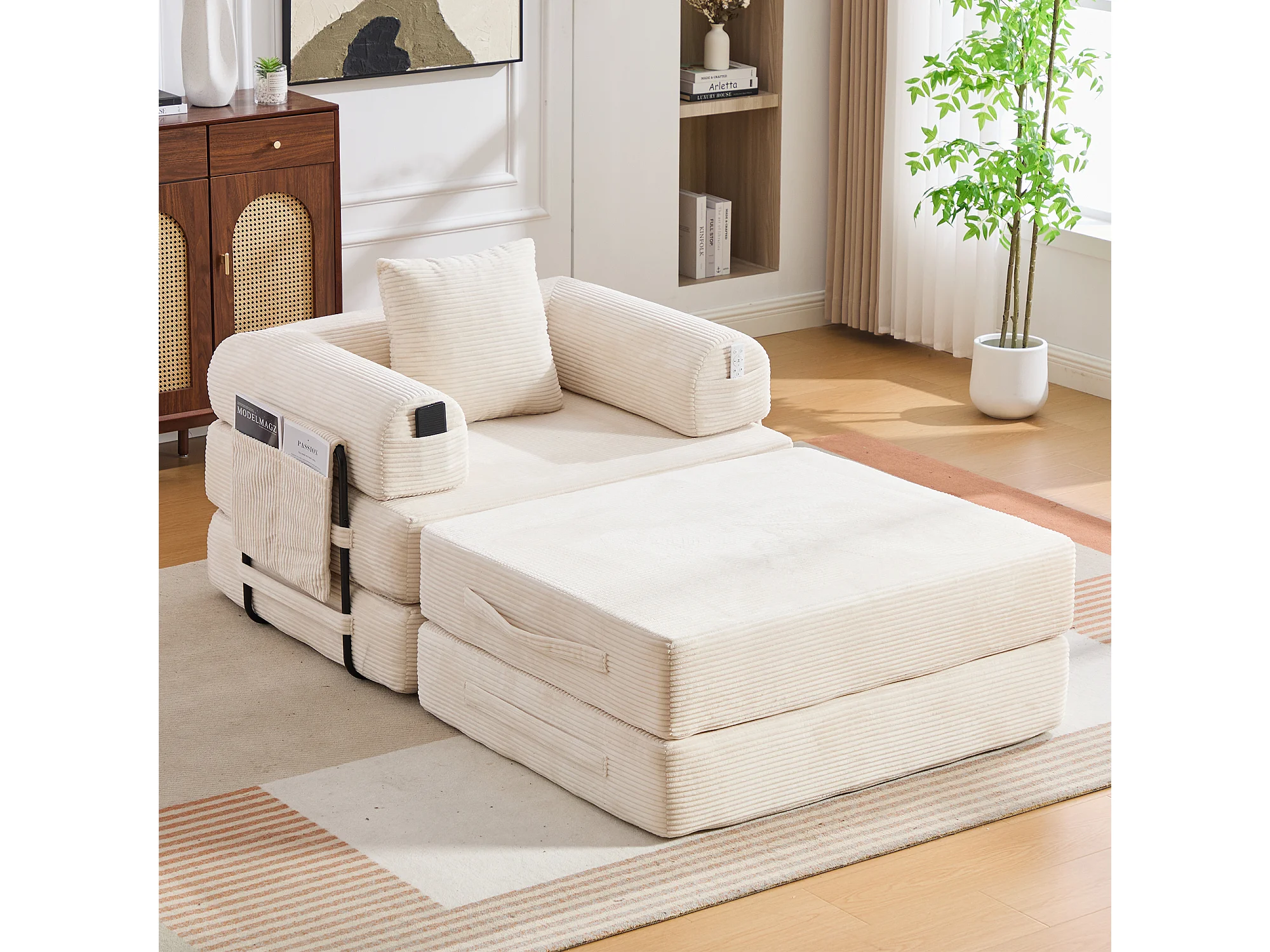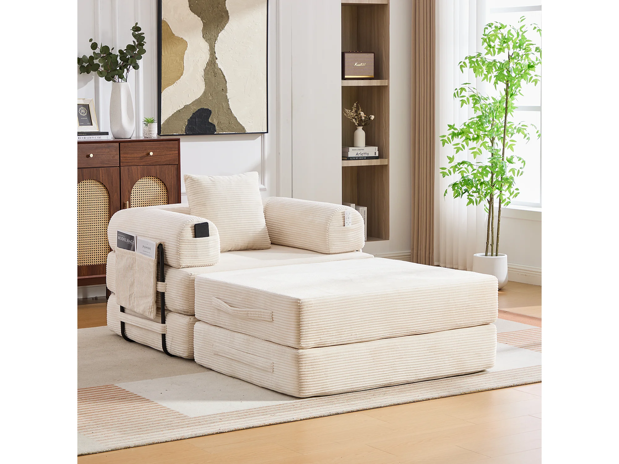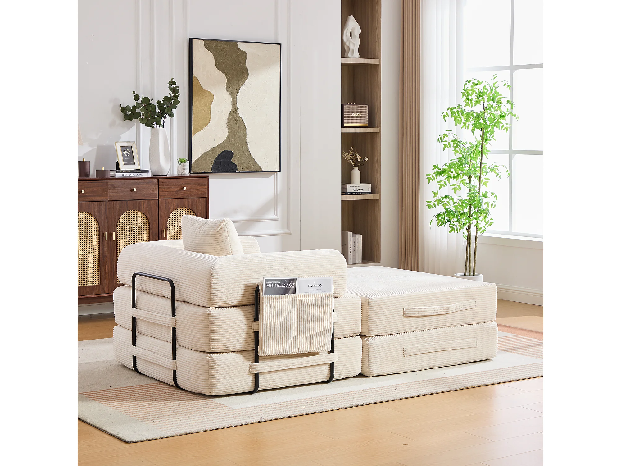 Sillón convertible de pana - 190 x 112 x 67 cm - con cojines + bolsillo - infinitamente modular - beige