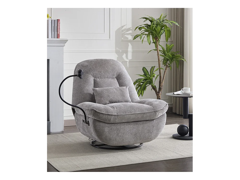 Sillón de 100x87x100 cm con cojín lumbar, función giratoria y brazo flexible en gris Ermi