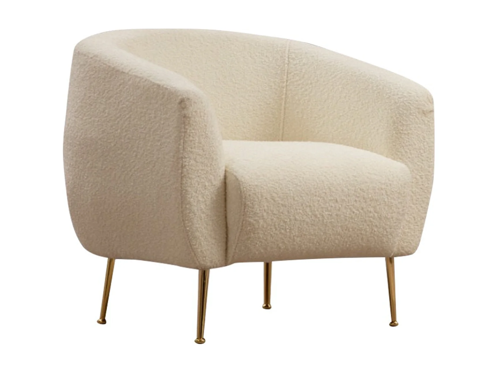 Sillón de bucle crema de poliéster con patas de metal dorado - Cómodo y elegante