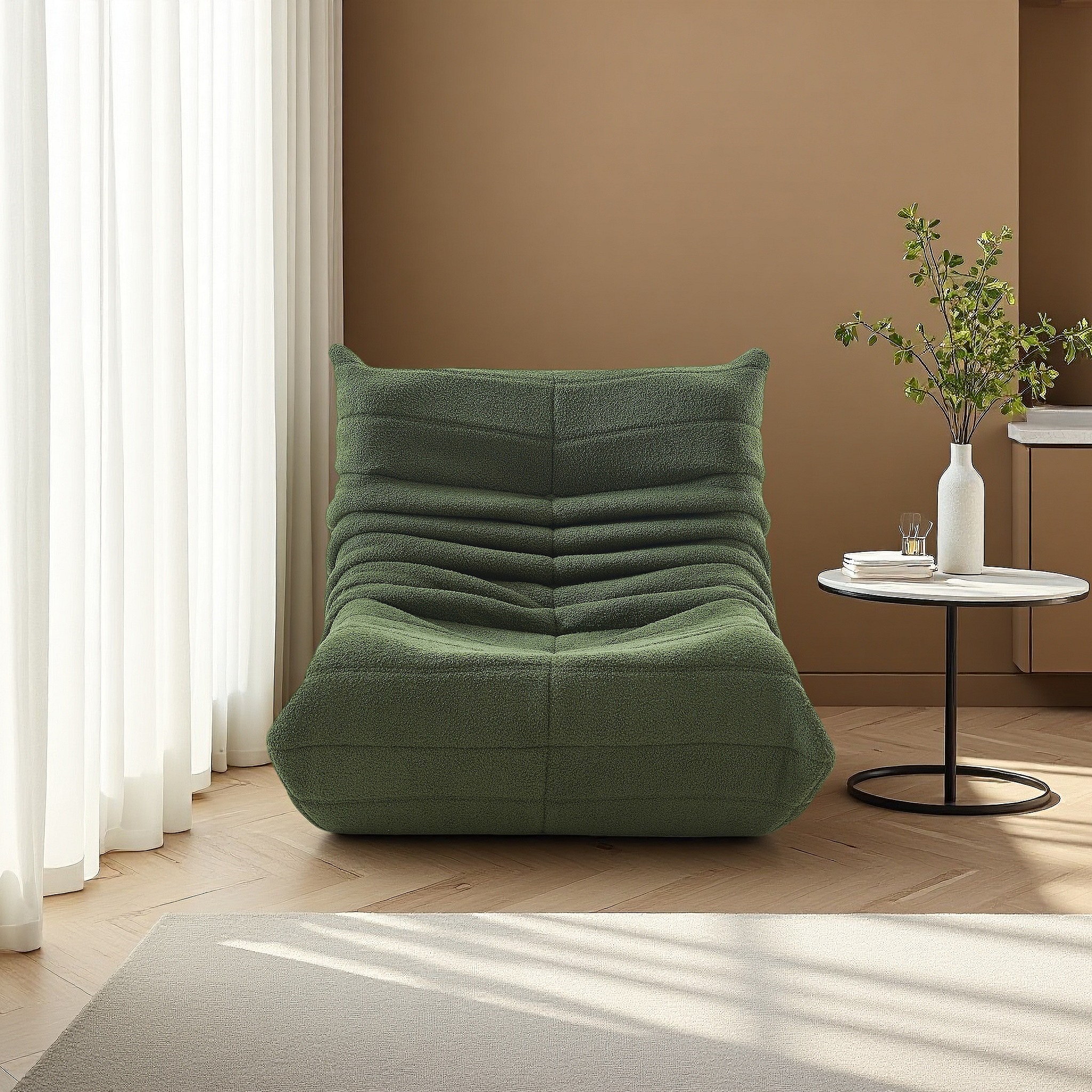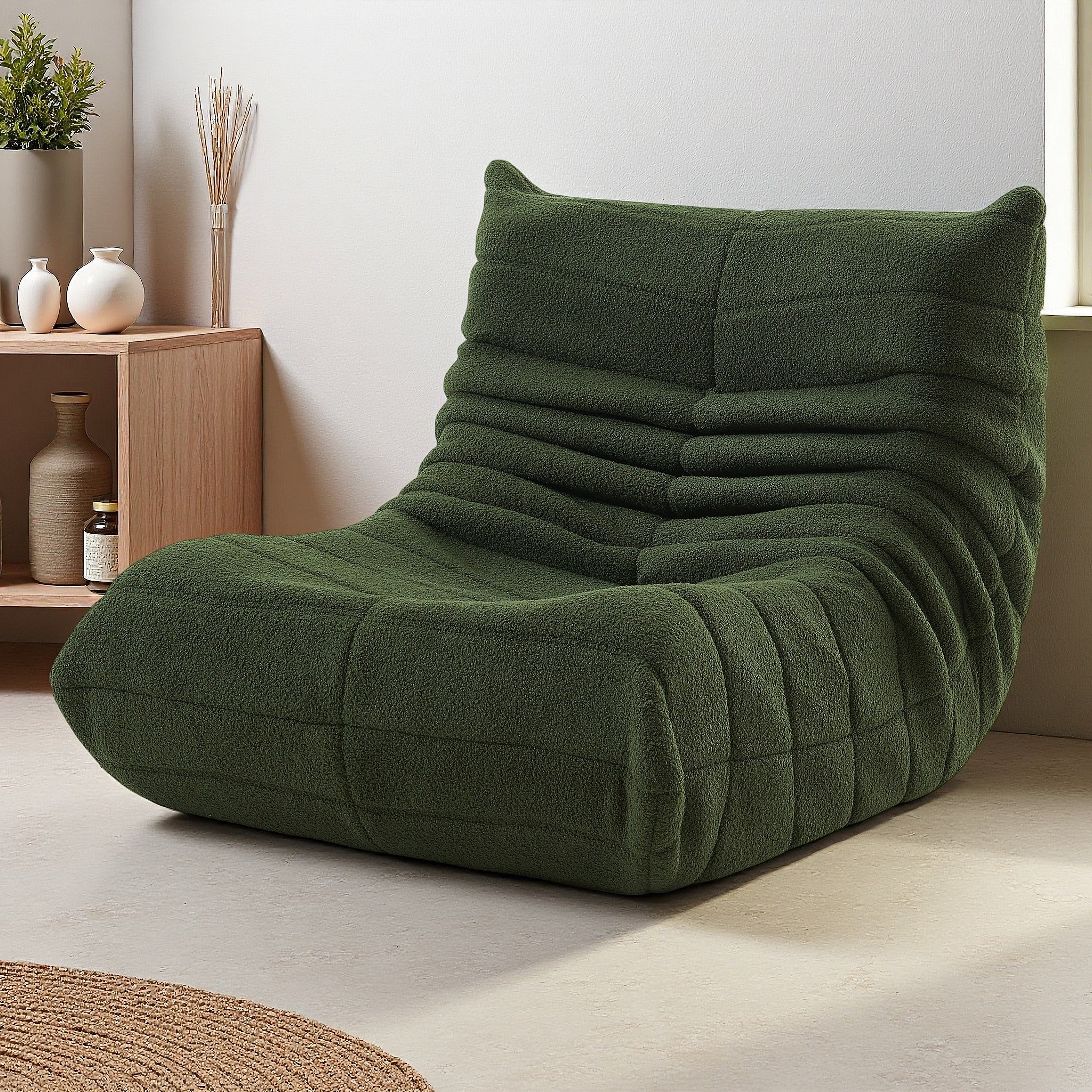 Sillón de felpa verde, suave piel de cordero, ligero y portátil, acolchado de alta densidad, ideal para sala de estar, dormitorio u oficina.