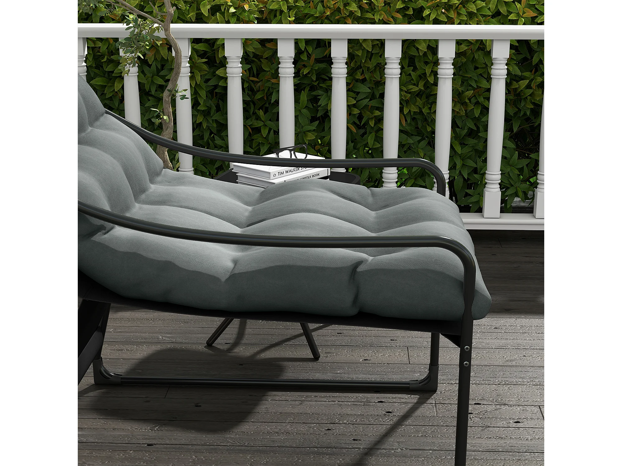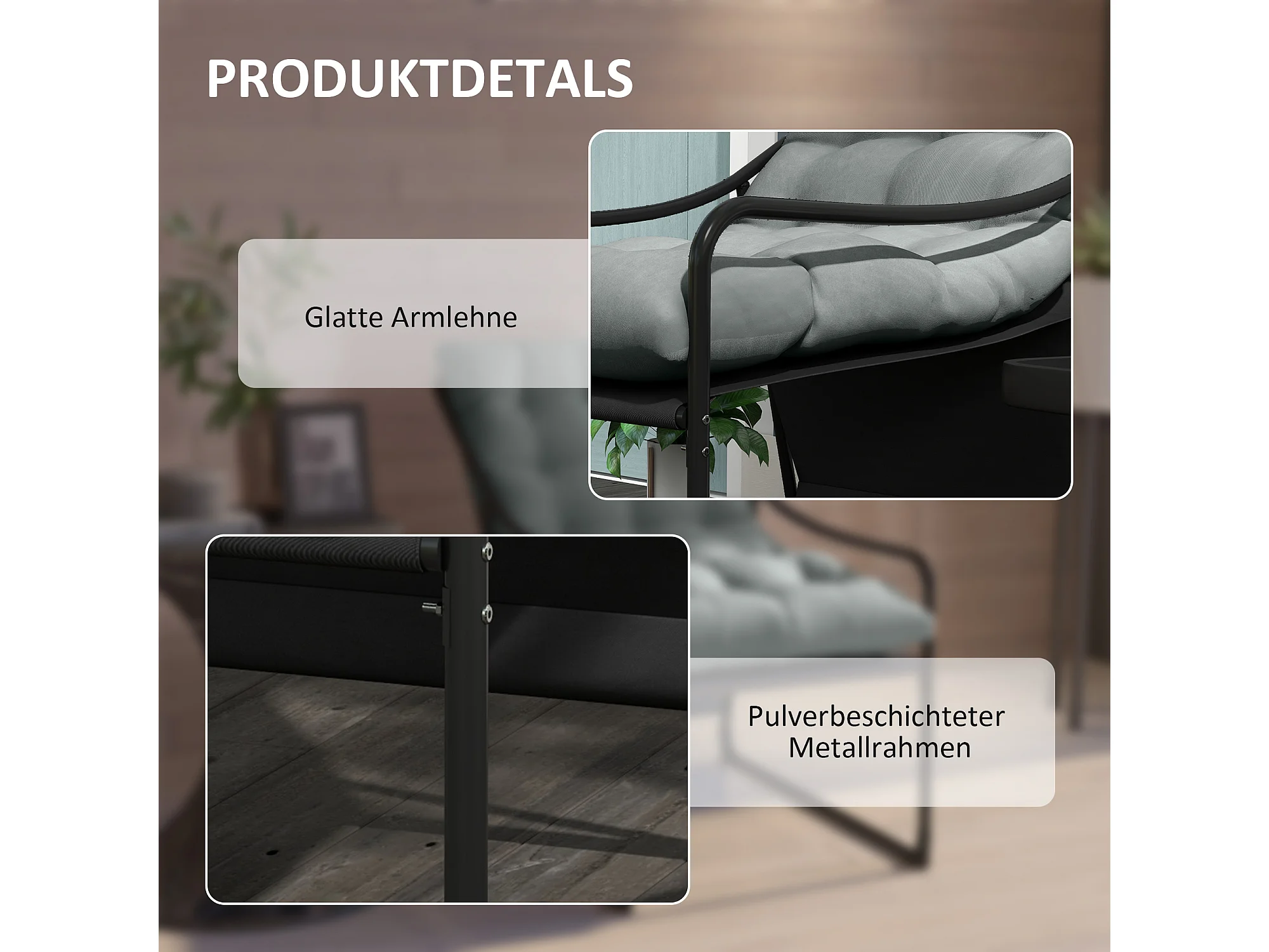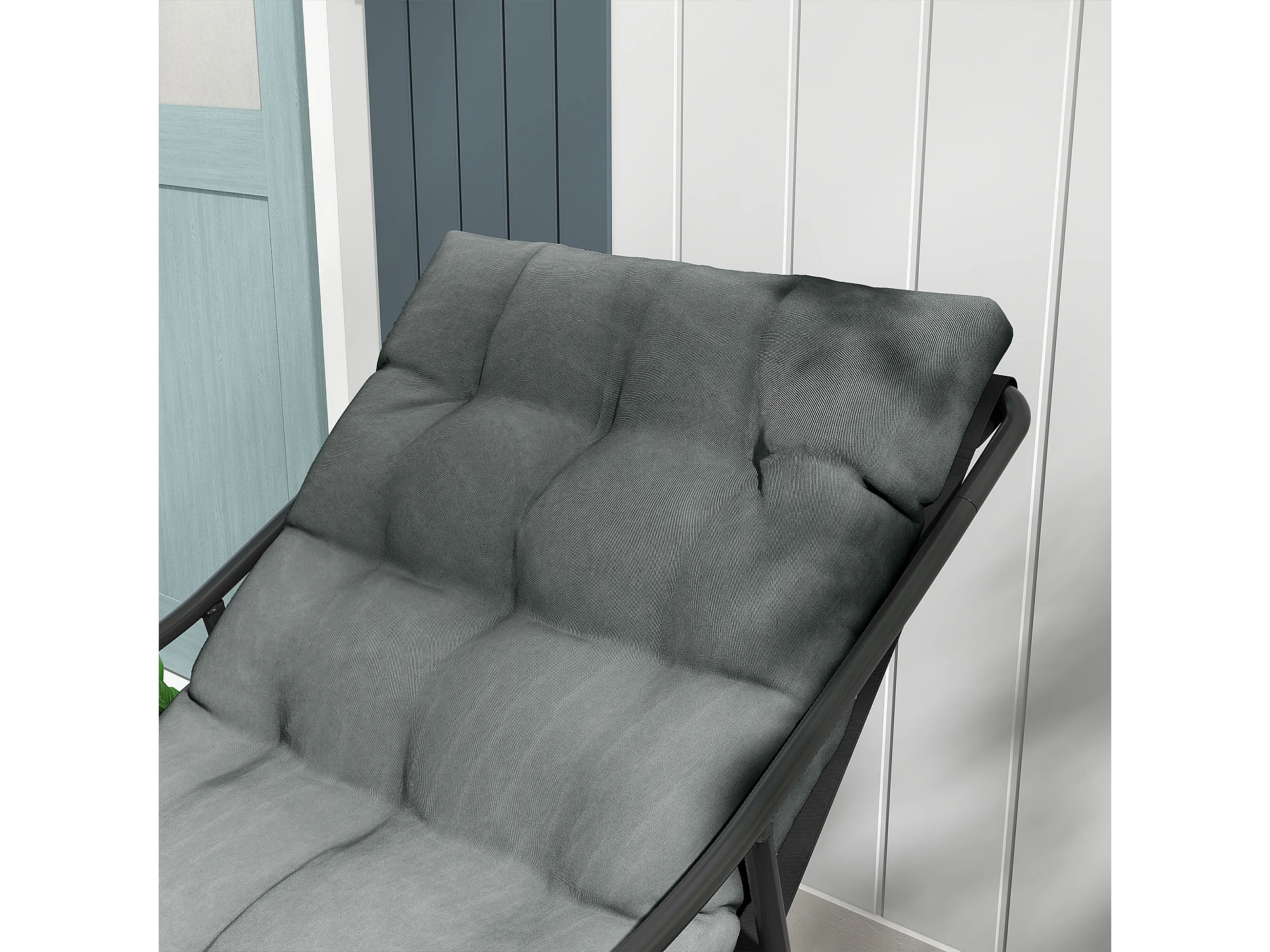 Sillón de jardín con cojín grueso, acero, gris (62x110x88 cm)