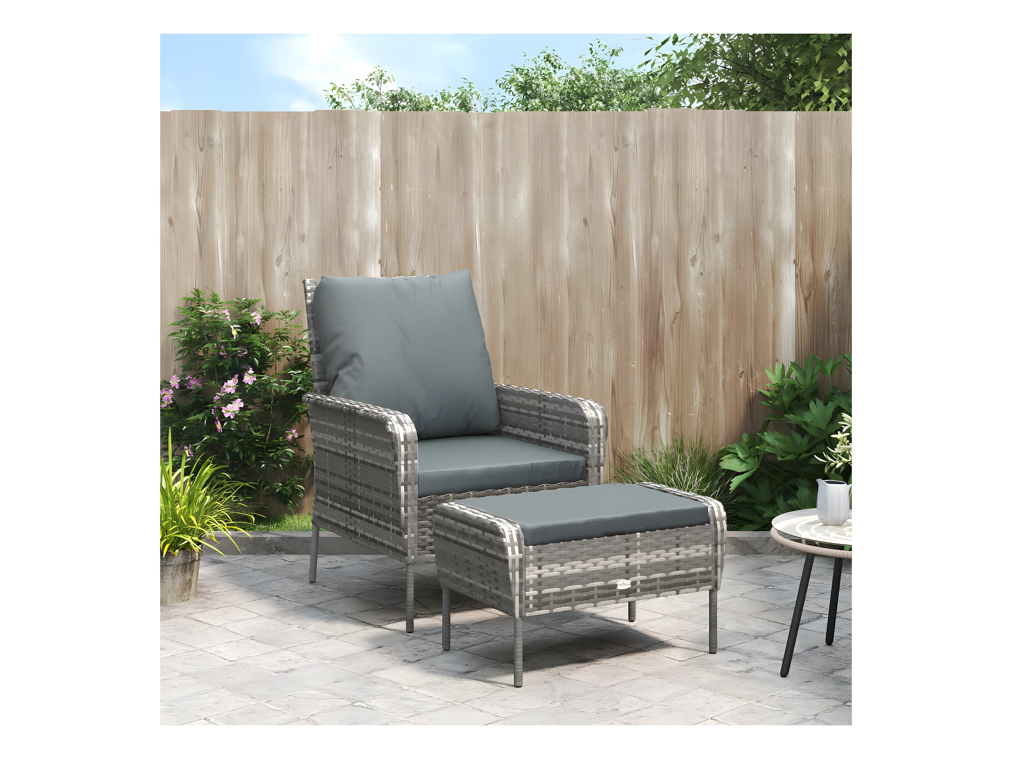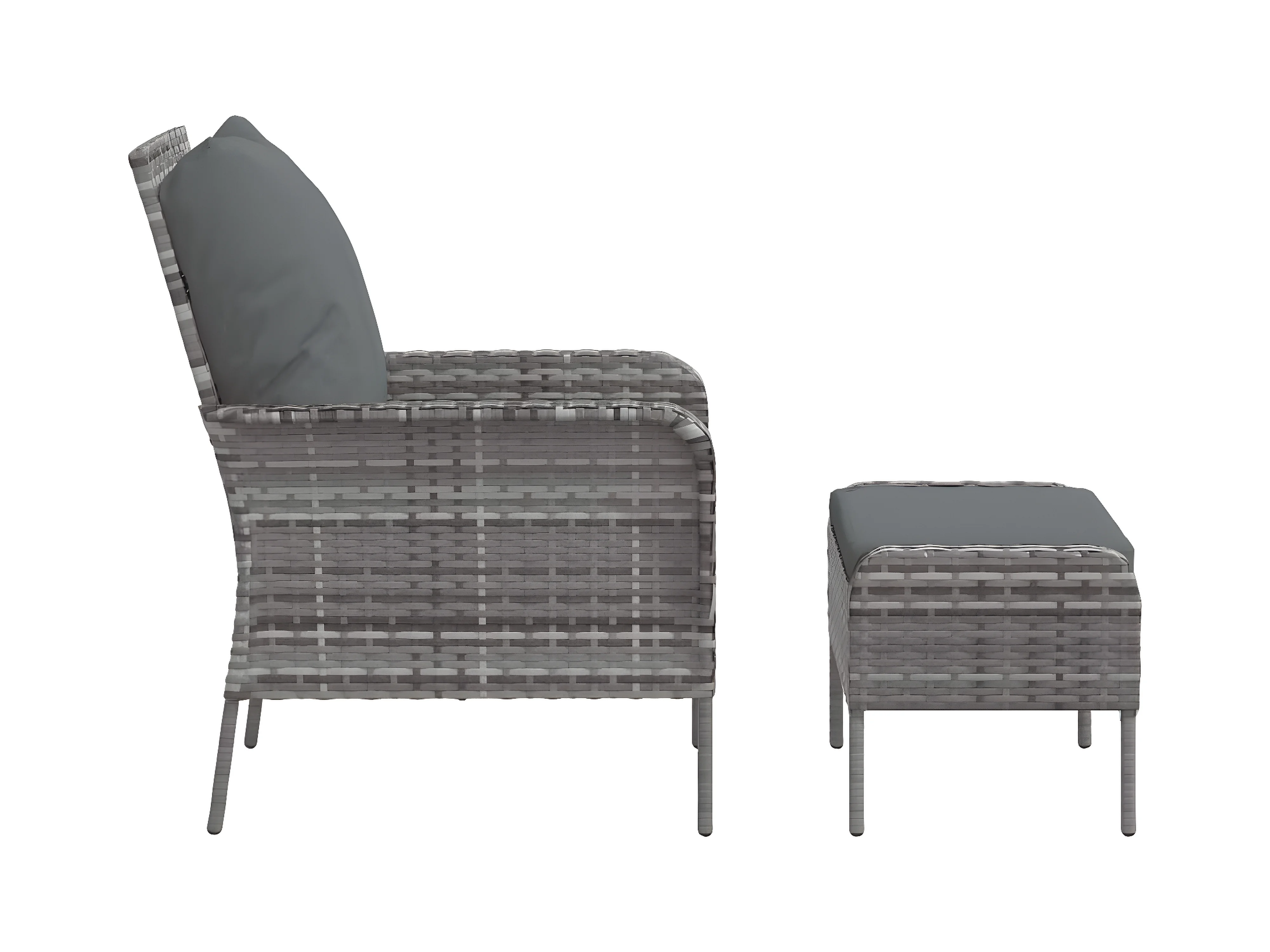 Sillón de jardín con reposapiés ratán sintético gris ES887418
