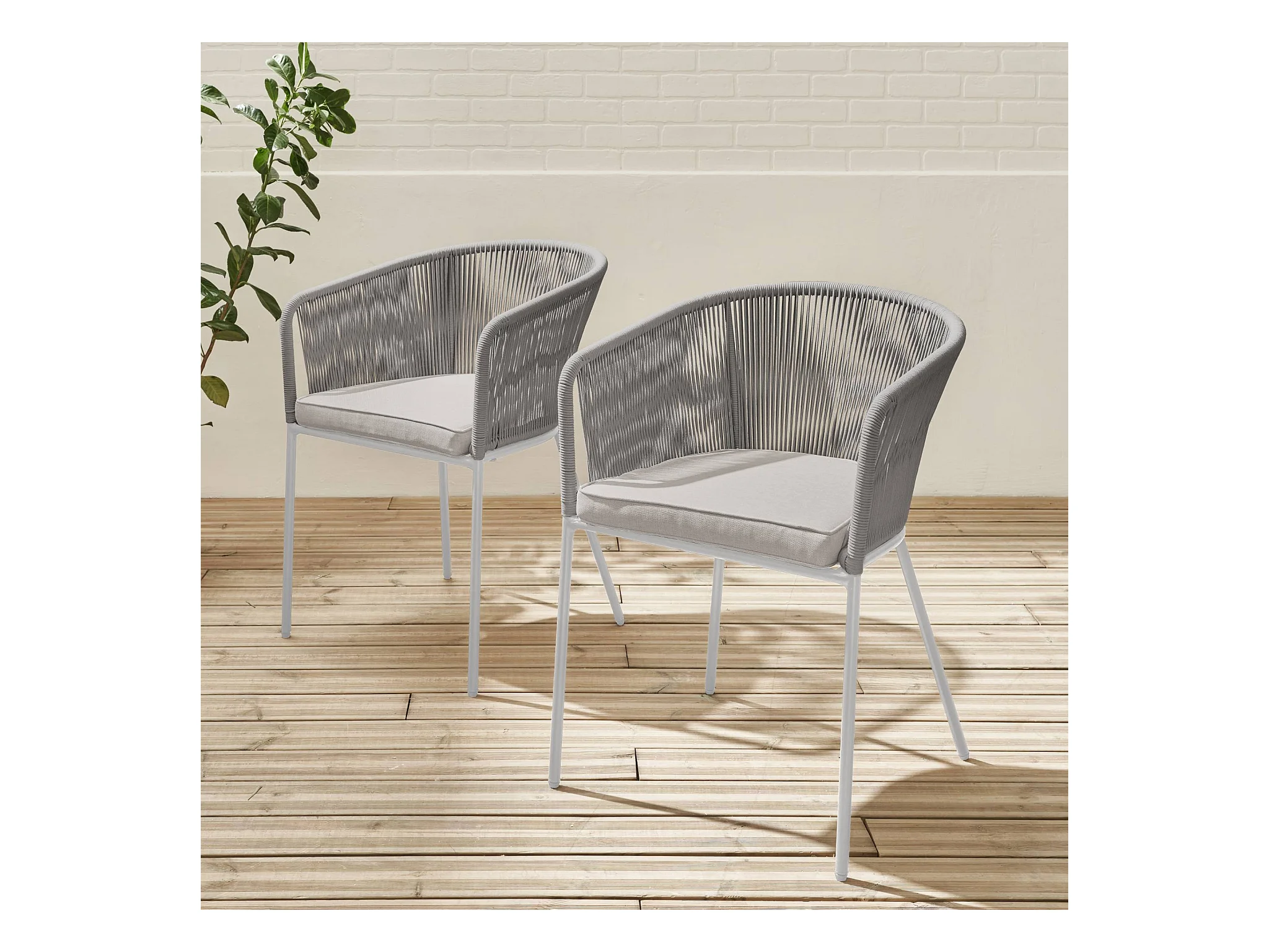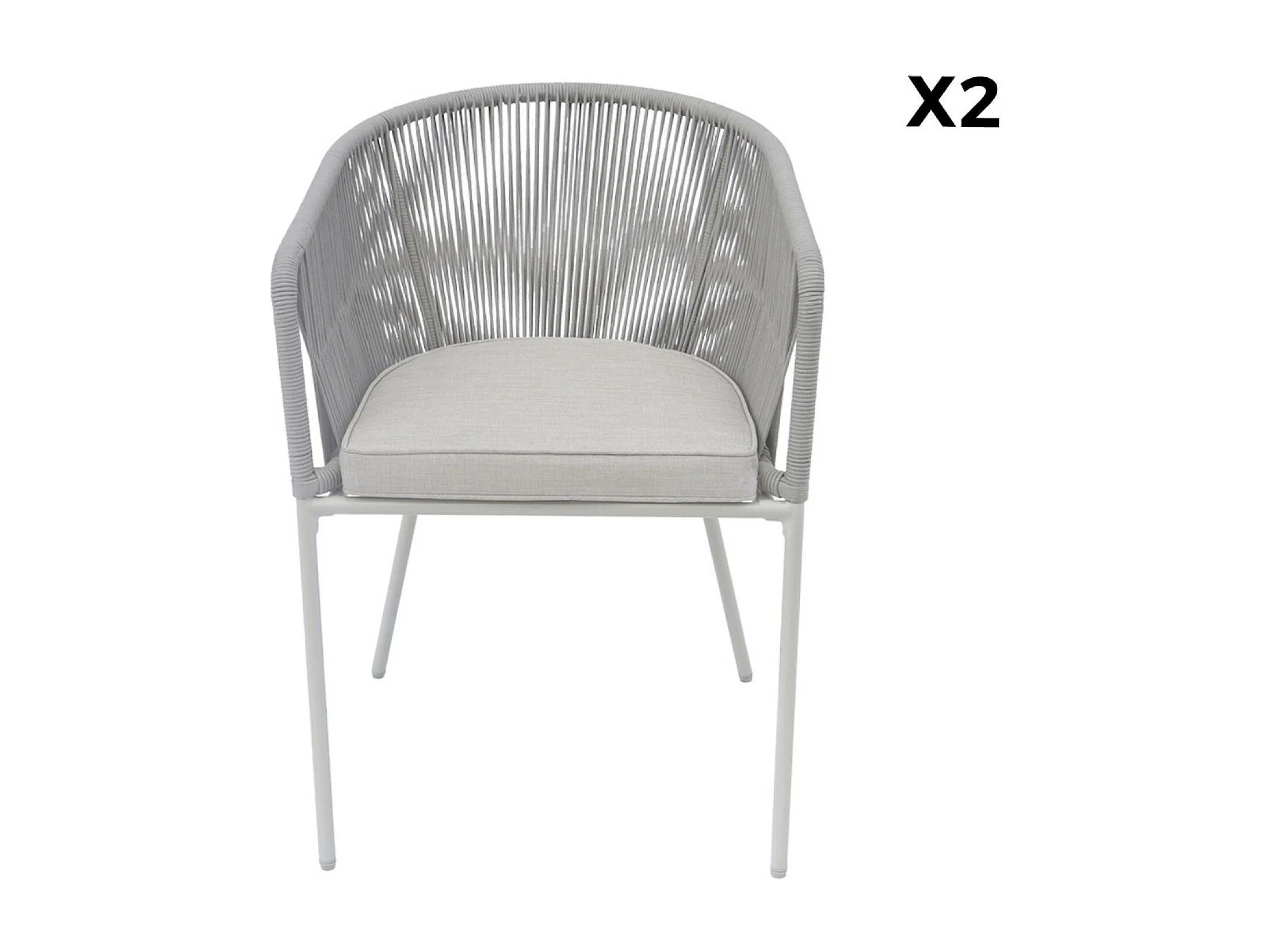 Sillón de jardín de cuerda y acero galvanizado, set de 2 gris