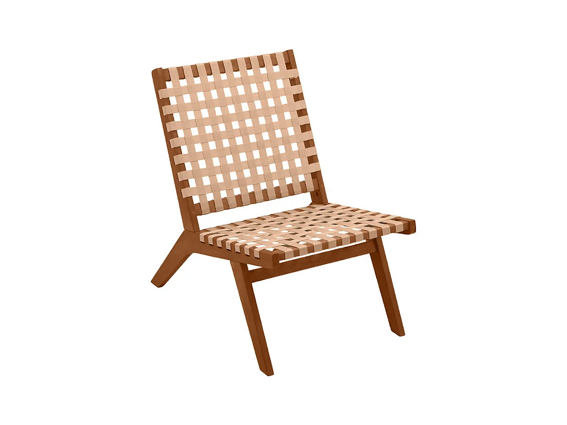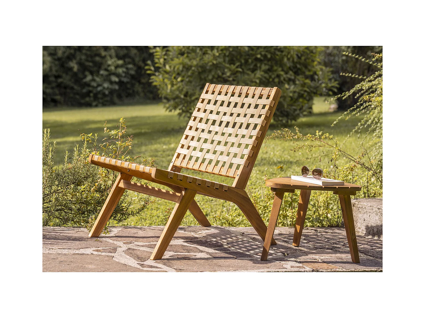 Sillón de jardín de madera maciza con cinchas beige LUCEA
