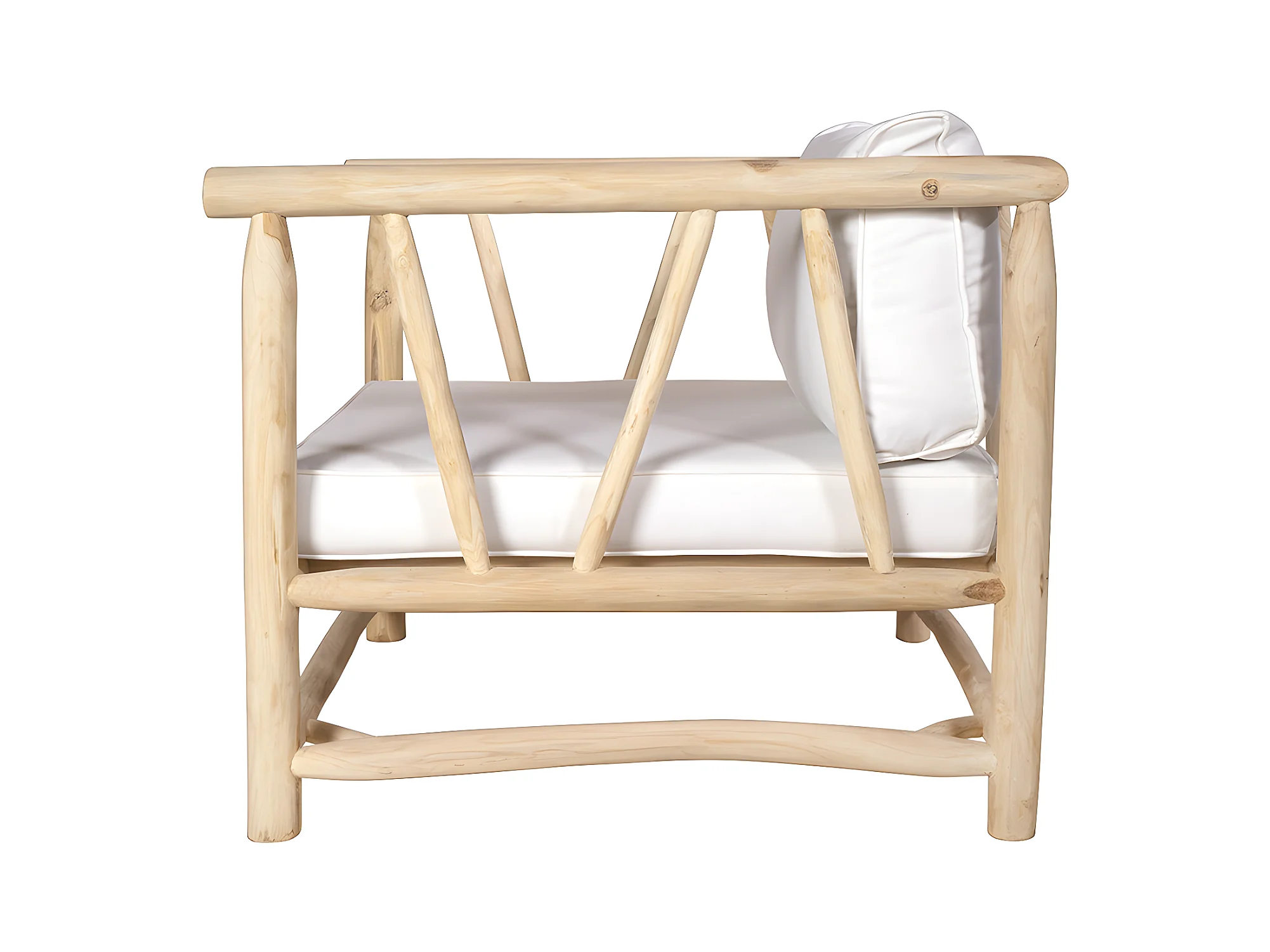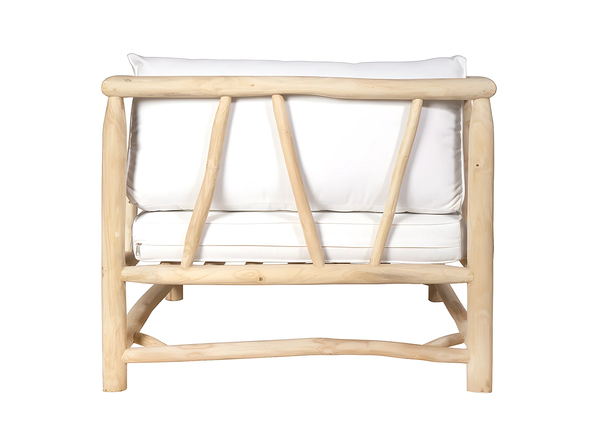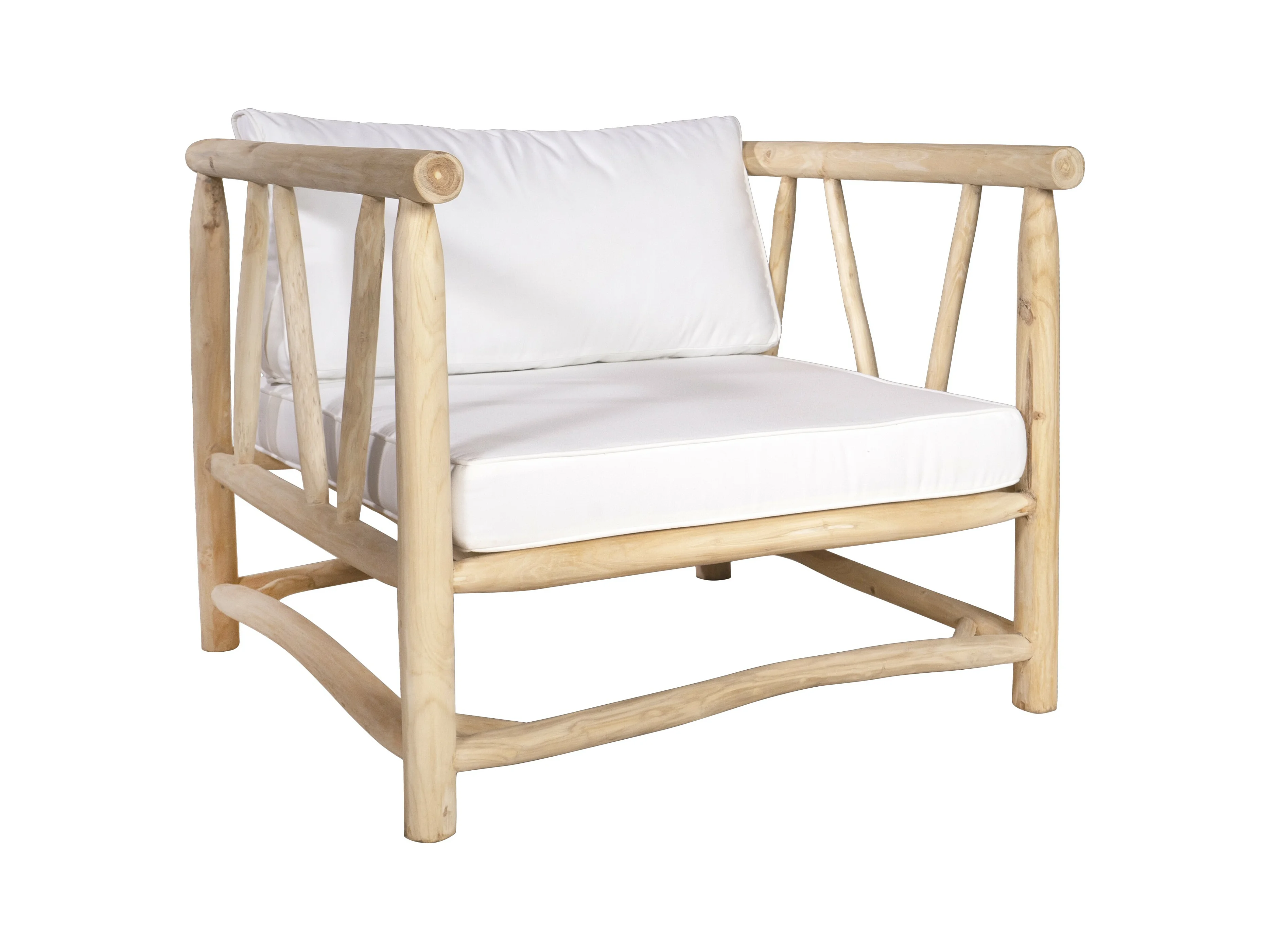 Sillón de jardín de teca con cojines - Natural claro y blanco TULUM