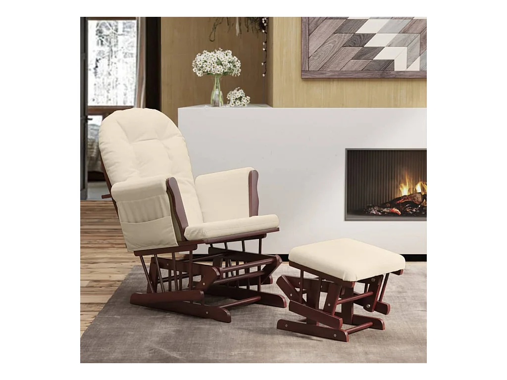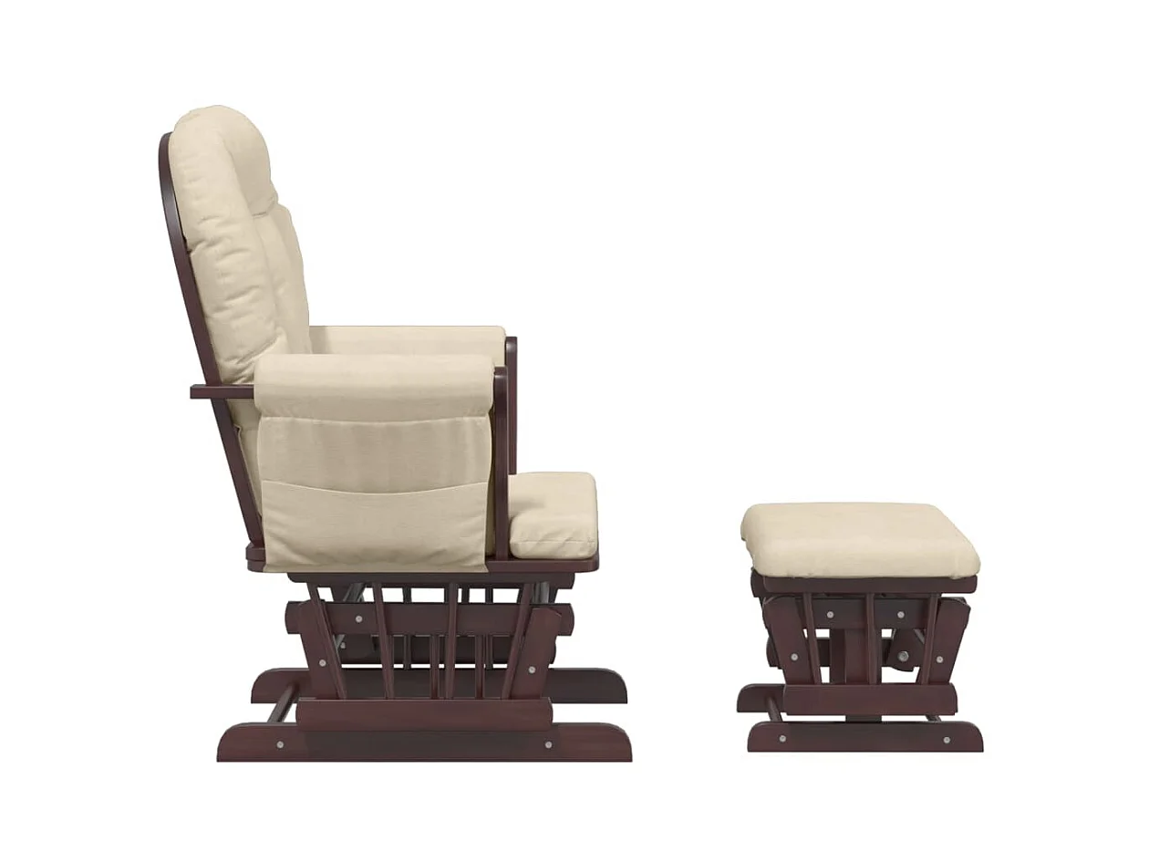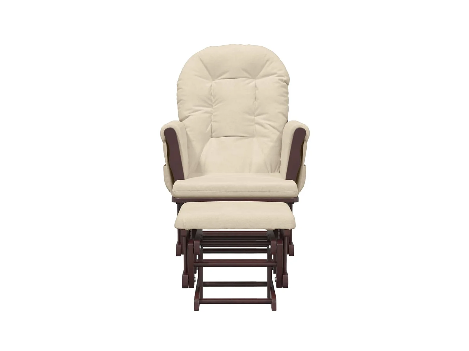 Silla mecedora con reposapiés terciopelo crema ES42156
