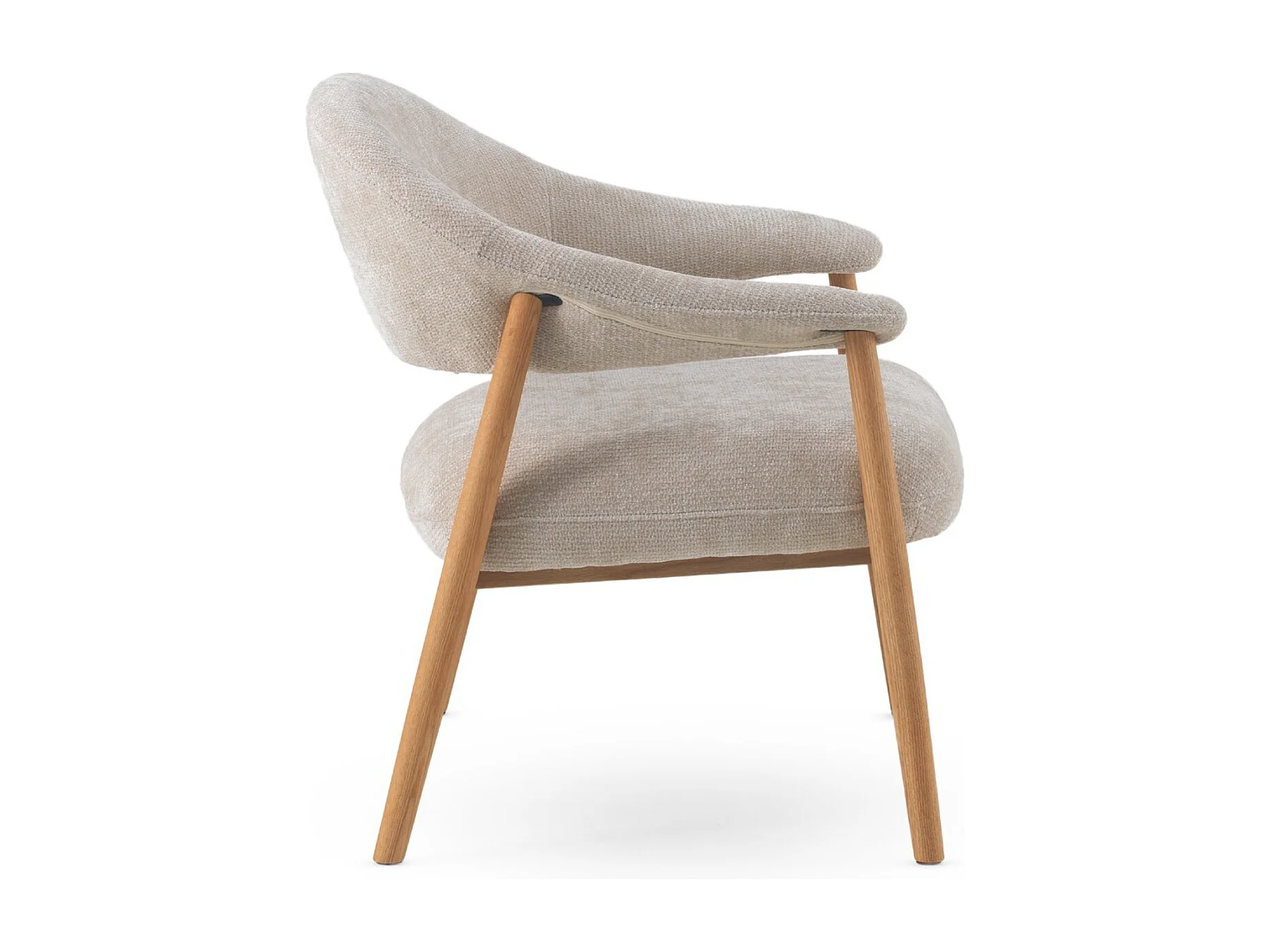 Sillón de tela efecto bouclé marfil con patas de madera de caucho - FAIZA