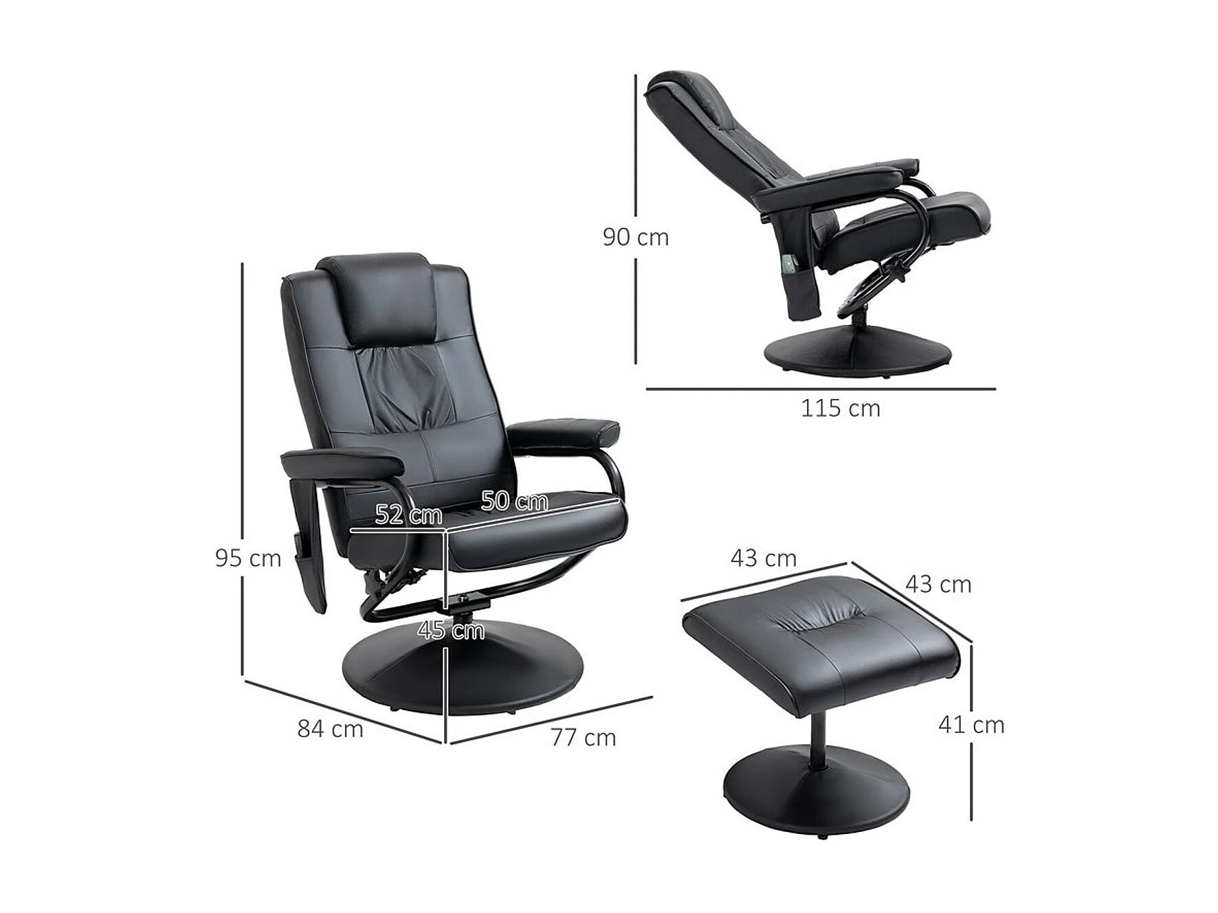Sillón reclinable masaje con reposapiés cuero sintético negro
